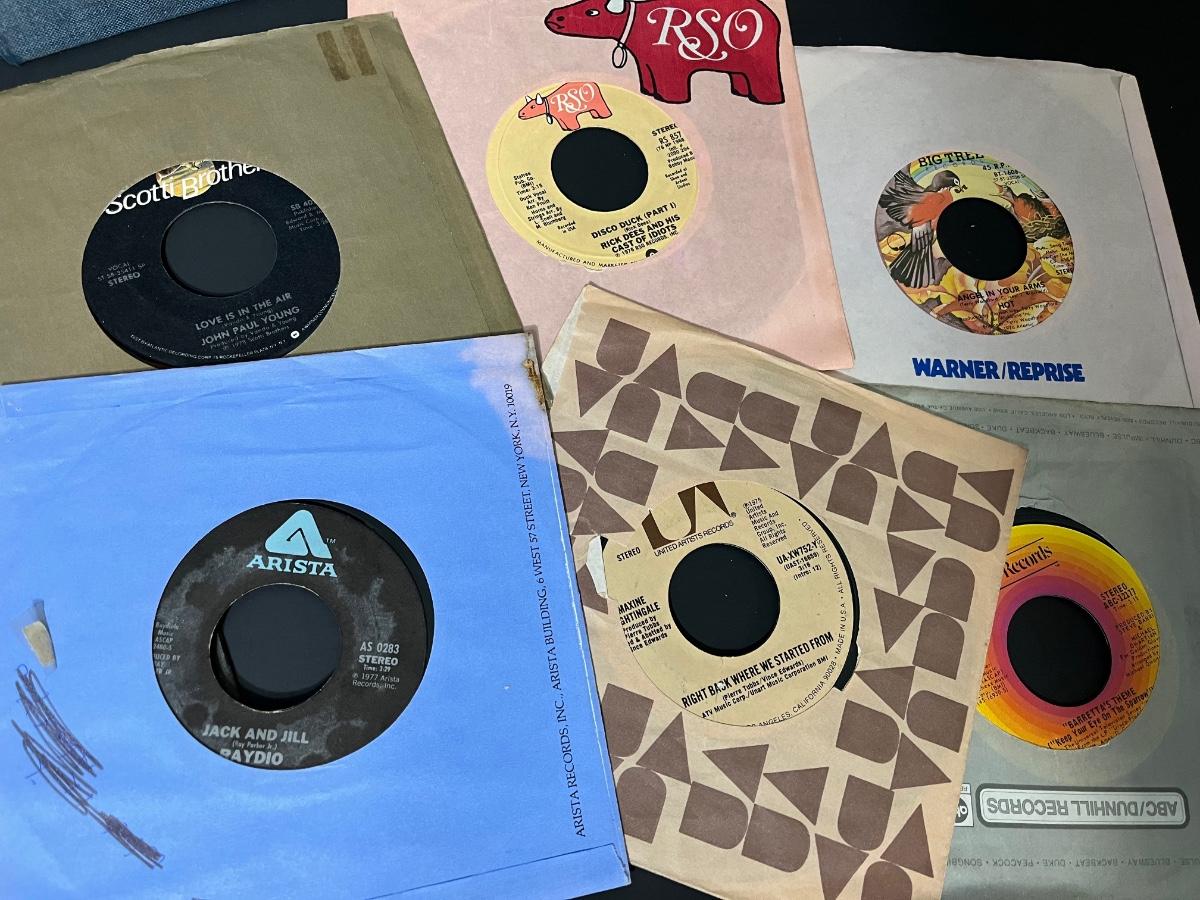 LOT 92: 40+ 45 RPM Singles in Vintage Case - Lots of Disco