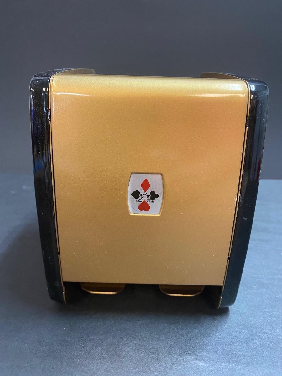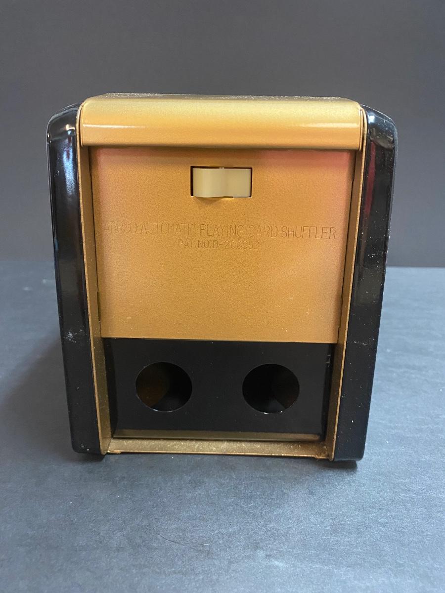 Playing card shuffler and three packs of unopened cards. Please see all pictures as they are the best representation of the items. The pictures show condition, measurements if taken, and what is included in the lot. Due to the large amount that we photograph and the time frame, we are not always able to take measurements. All items unless noted, are pre-owned and have been used. If you purchased furniture, you must bring help. We do not allow one person to carry large furniture out on their own. Bring help, tools and a truck for the safety of our client’s homes, and your personal safety. Any damages that result to the property including walls, and floors due to moving of the furniture will be charged to the buyer. Company policy. Thank you.