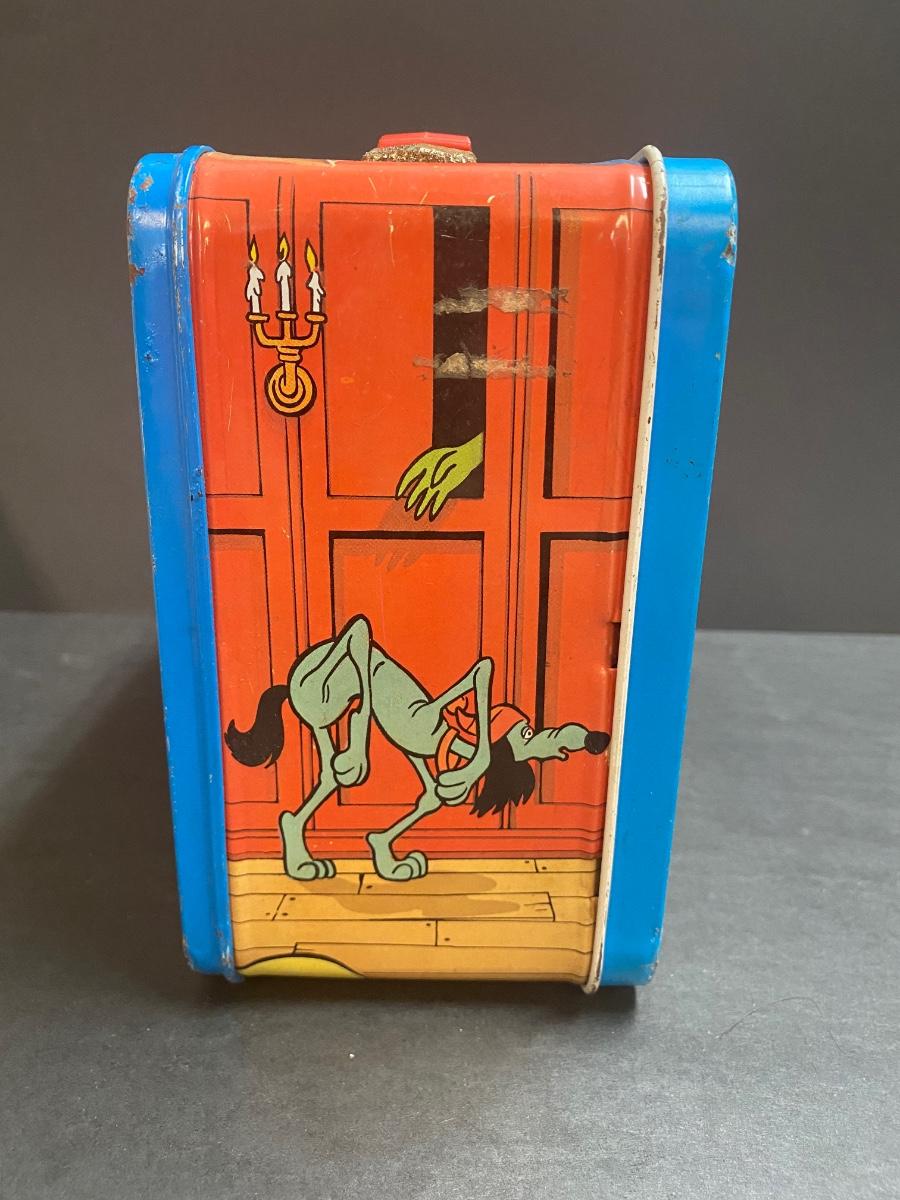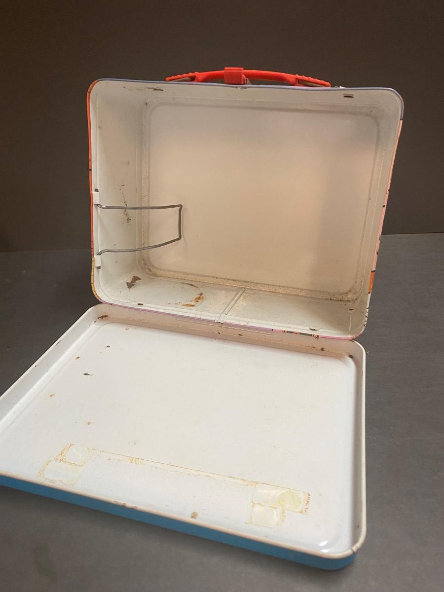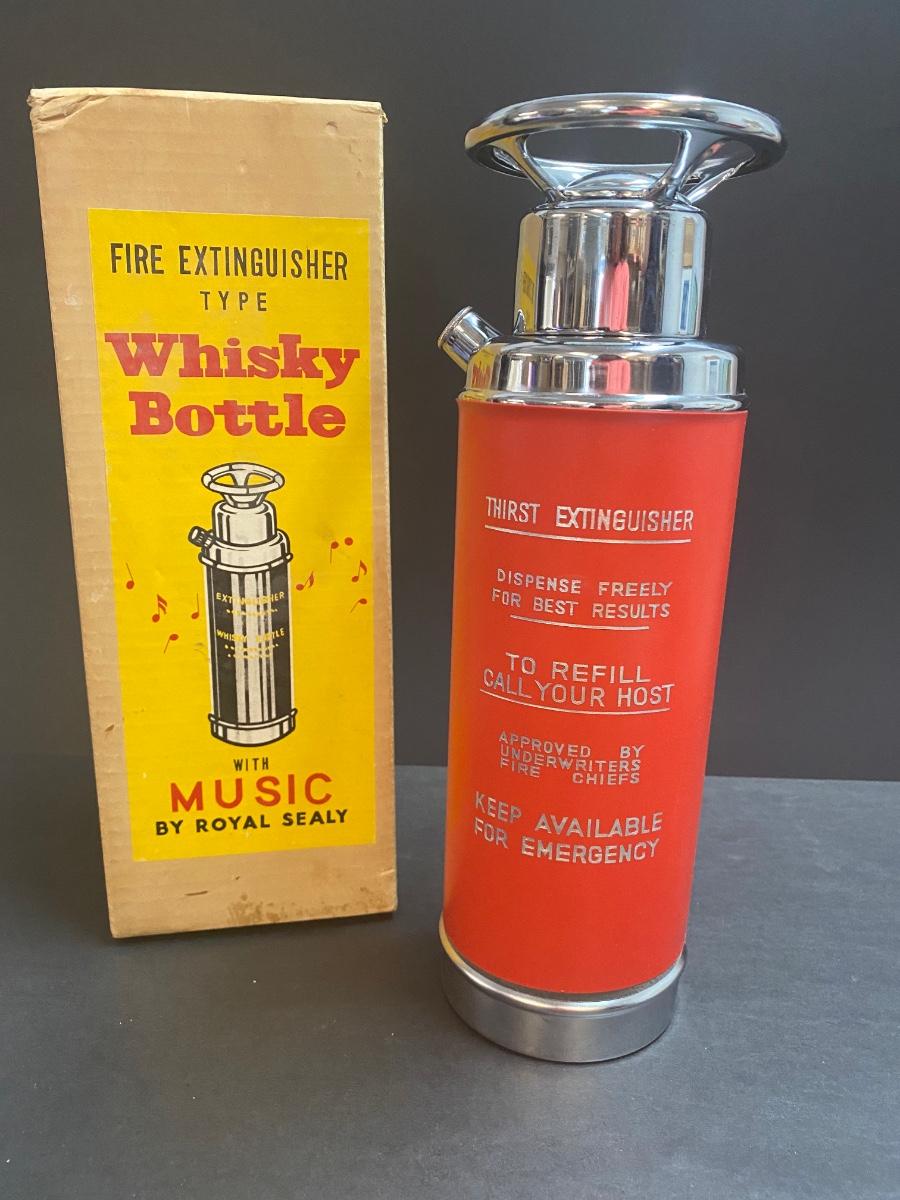 Vintage musical fire extinguisher whisky bottle. Vintage metal lunchbox. Please see all pictures as they are the best representation of the items. The pictures show condition, measurements if taken, and what is included in the lot. Due to the large amount that we photograph and the time frame, we are not always able to take measurements. All items unless noted, are pre-owned and have been used. If you purchased furniture, you must bring help. We do not allow one person to carry large furniture out on their own. Bring help, tools and a truck for the safety of our client’s homes, and your personal safety. Any damages that result to the property including walls, and floors due to moving of the furniture will be charged to the buyer. Company policy. Thank you.