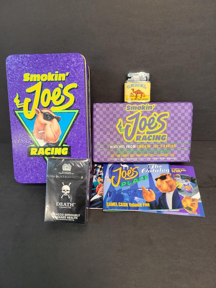LOT 128: Vintage Advertising Smoking Joes Camel Tin/Lighter/Matches & Death Cigarettes
