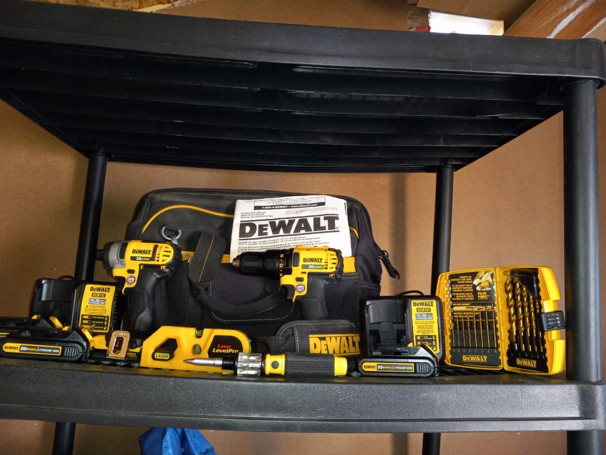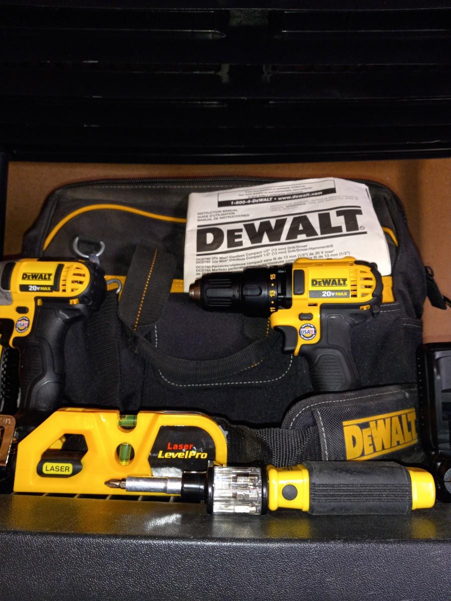 INCLUDES DRILL BITS, LASER LEVEL, SCREWDRIVER