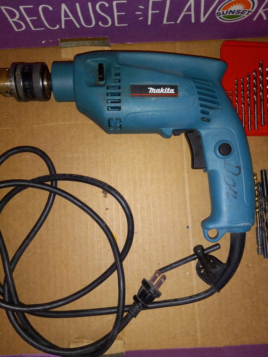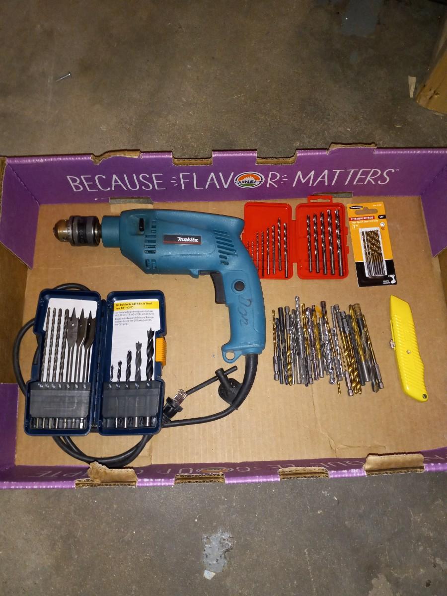 MAKITA DRILL AND AN ASSORTMENT OF BITS