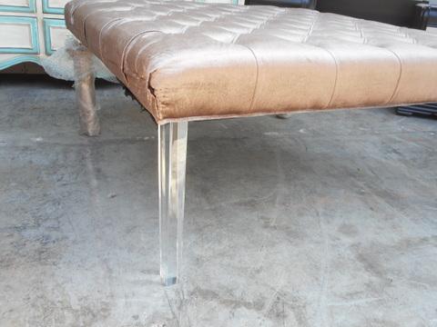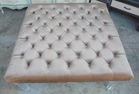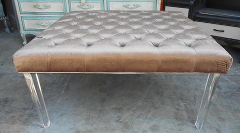 Lot 714 - Awesome Large Square Satin Tuffed Coffee Table w/ Lucite Acrylic Legs