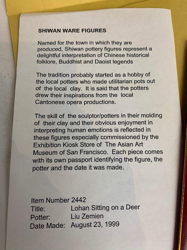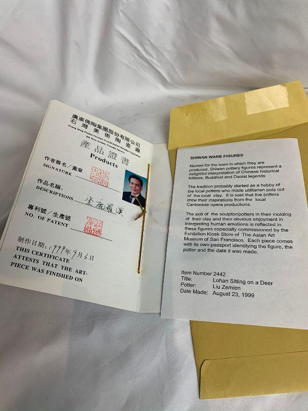 Lohan with Deer on Base Shiwanware and certificate of authenticity 10" x 6" x 8"