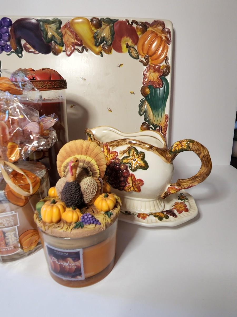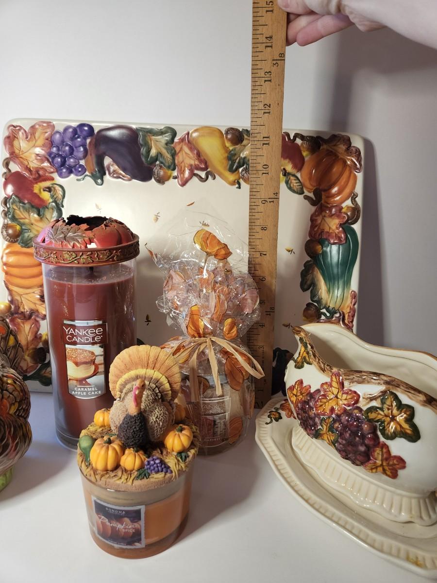 Ceramic like gravy bowl/turkey/platter & autumn candles. Please see all pictures as they are the best representation of the items. The pictures show condition, measurements if taken, and what is included in the lot. Due to the large amount that we photograph and the time frame, we are not always able to take measurements. All items unless noted, are pre-owned and have been used. If you purchased furniture, you must bring help. We do not allow one person to carry large furniture out on their own. Bring help, tools and a truck for the safety of our client’s homes, and your personal safety. Any damages that result to the property including walls, and floors due to moving of the furniture will be charged to the buyer. Company policy. Thank you.