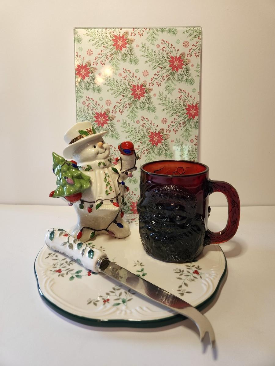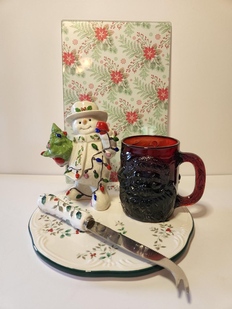 Pfaltzgraff Winterberry cheese tray with slicer/ Lenox snowman and more. Please see all pictures as they are the best representation of the items. The pictures show condition, measurements if taken, and what is included in the lot. Due to the large amount that we photograph and the time frame, we are not always able to take measurements. All items unless noted, are pre-owned and have been used. If you purchased furniture, you must bring help. We do not allow one person to carry large furniture out on their own. Bring help, tools and a truck for the safety of our client’s homes, and your personal safety. Any damages that result to the property including walls, and floors due to moving of the furniture will be charged to the buyer. Company policy. Thank you.