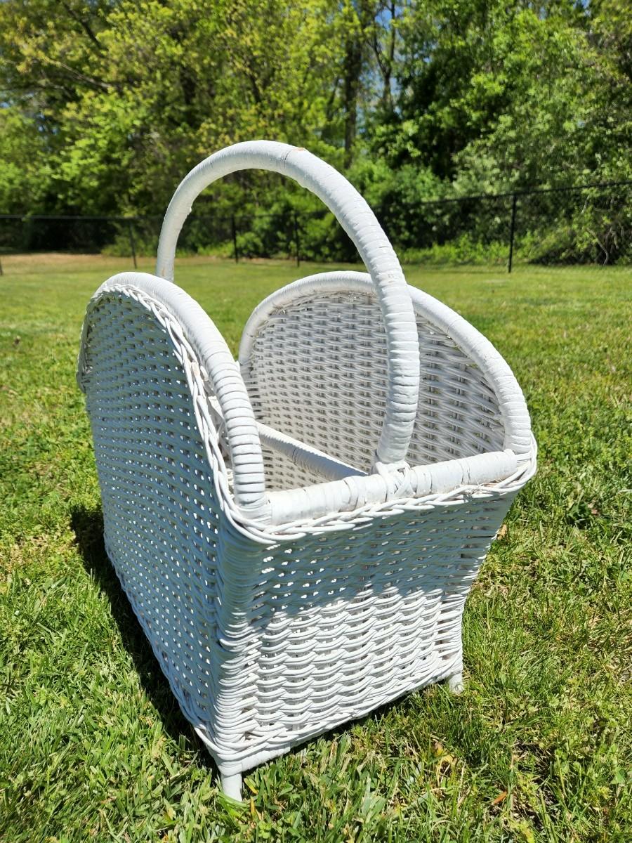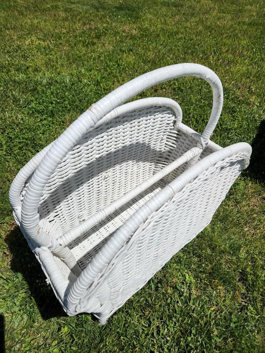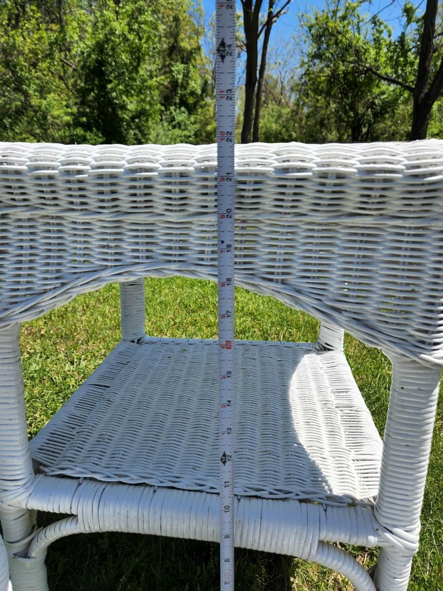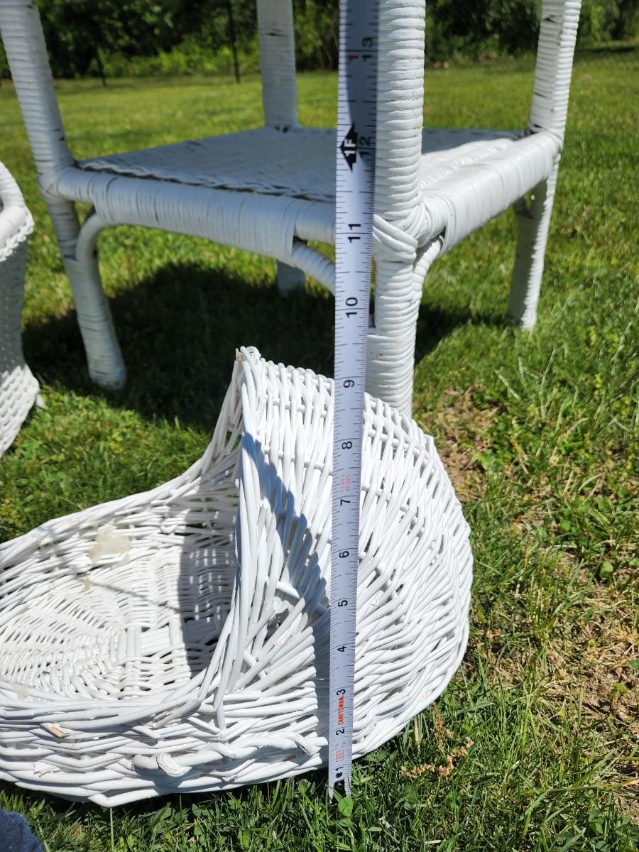 Three-piece white wicker set includes magazine rack/plant stand/bassinet. Please see all pictures as they are the best representation of the items. The pictures show condition, measurements if taken, and what is included in the lot. Due to the large amount that we photograph and the time frame, we are not always able to take measurements. All items unless noted, are pre-owned and have been used. If you purchased furniture, you must bring help. We do not allow one person to carry large furniture out on their own. Bring help, tools and a truck for the safety of our client’s homes, and your personal safety. Any damages that result to the property including walls, and floors due to moving of the furniture will be charged to the buyer. Company policy. Thank you.
