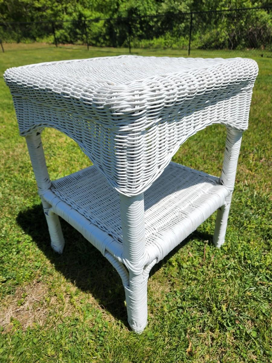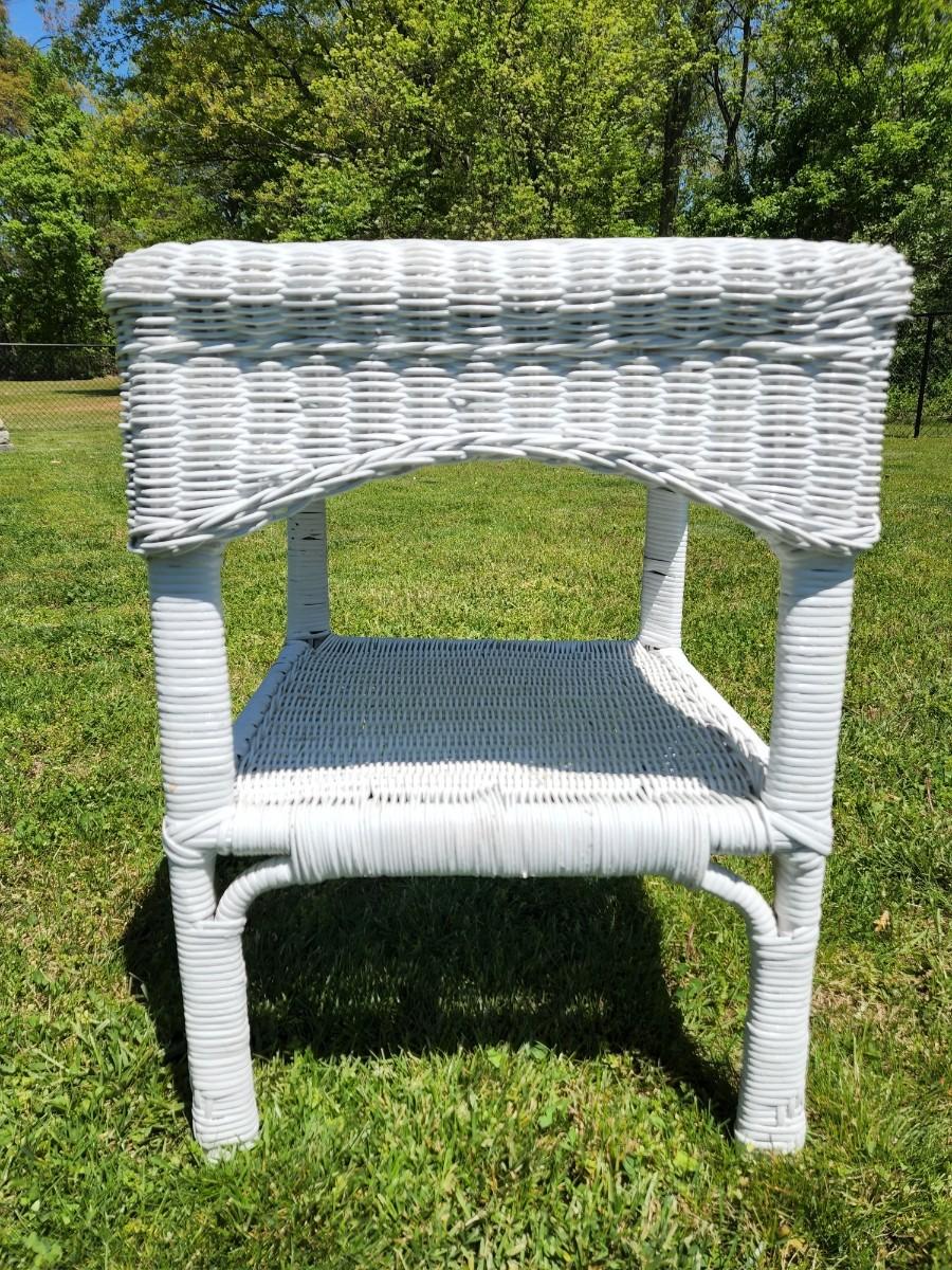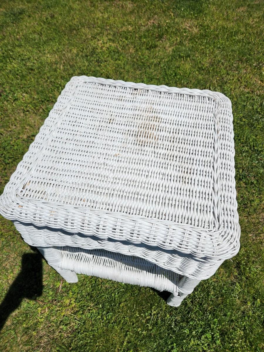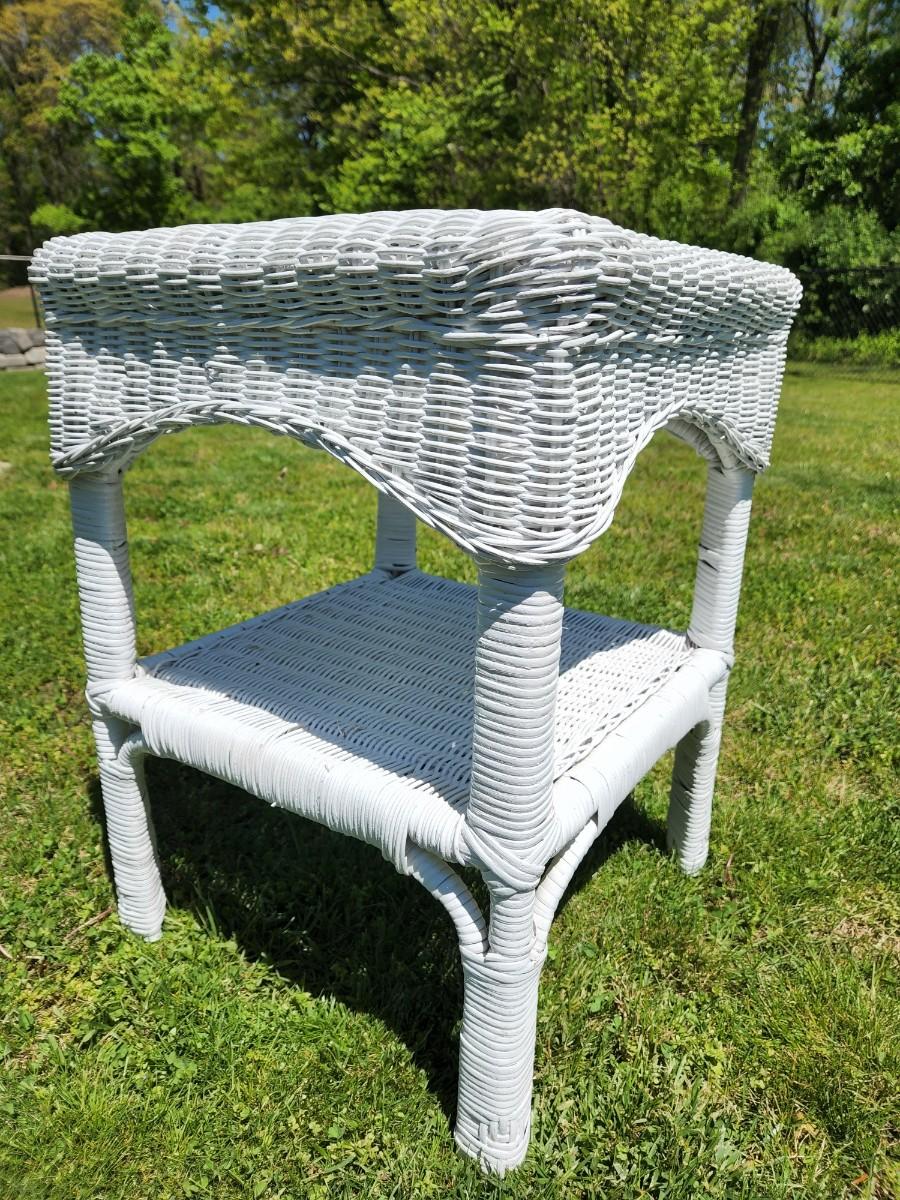 Three-piece white wicker set includes magazine rack/plant stand/bassinet. Please see all pictures as they are the best representation of the items. The pictures show condition, measurements if taken, and what is included in the lot. Due to the large amount that we photograph and the time frame, we are not always able to take measurements. All items unless noted, are pre-owned and have been used. If you purchased furniture, you must bring help. We do not allow one person to carry large furniture out on their own. Bring help, tools and a truck for the safety of our client’s homes, and your personal safety. Any damages that result to the property including walls, and floors due to moving of the furniture will be charged to the buyer. Company policy. Thank you.
