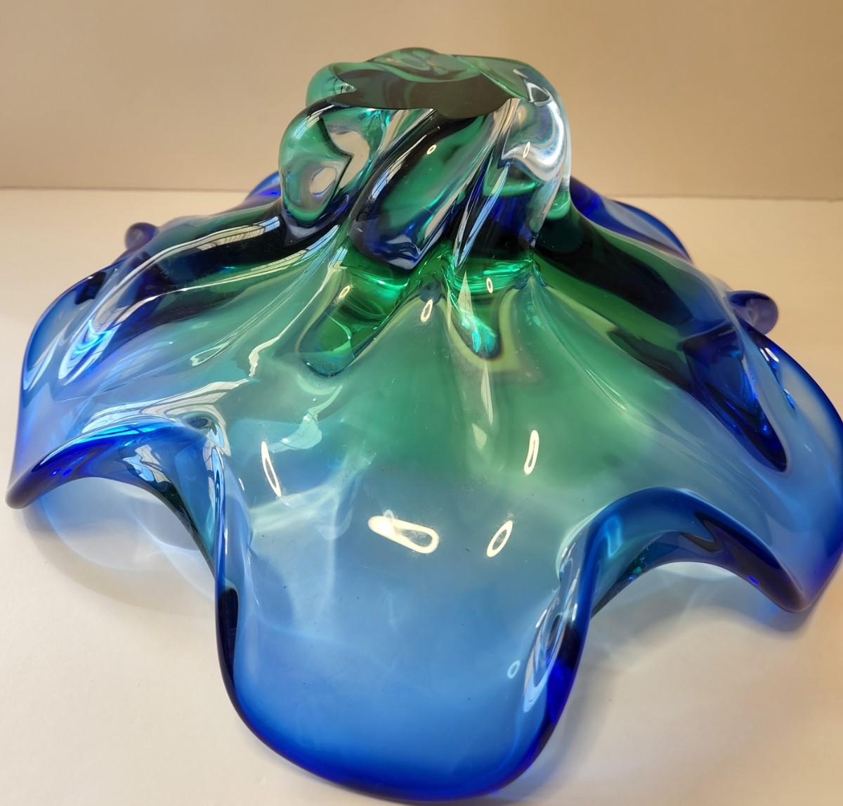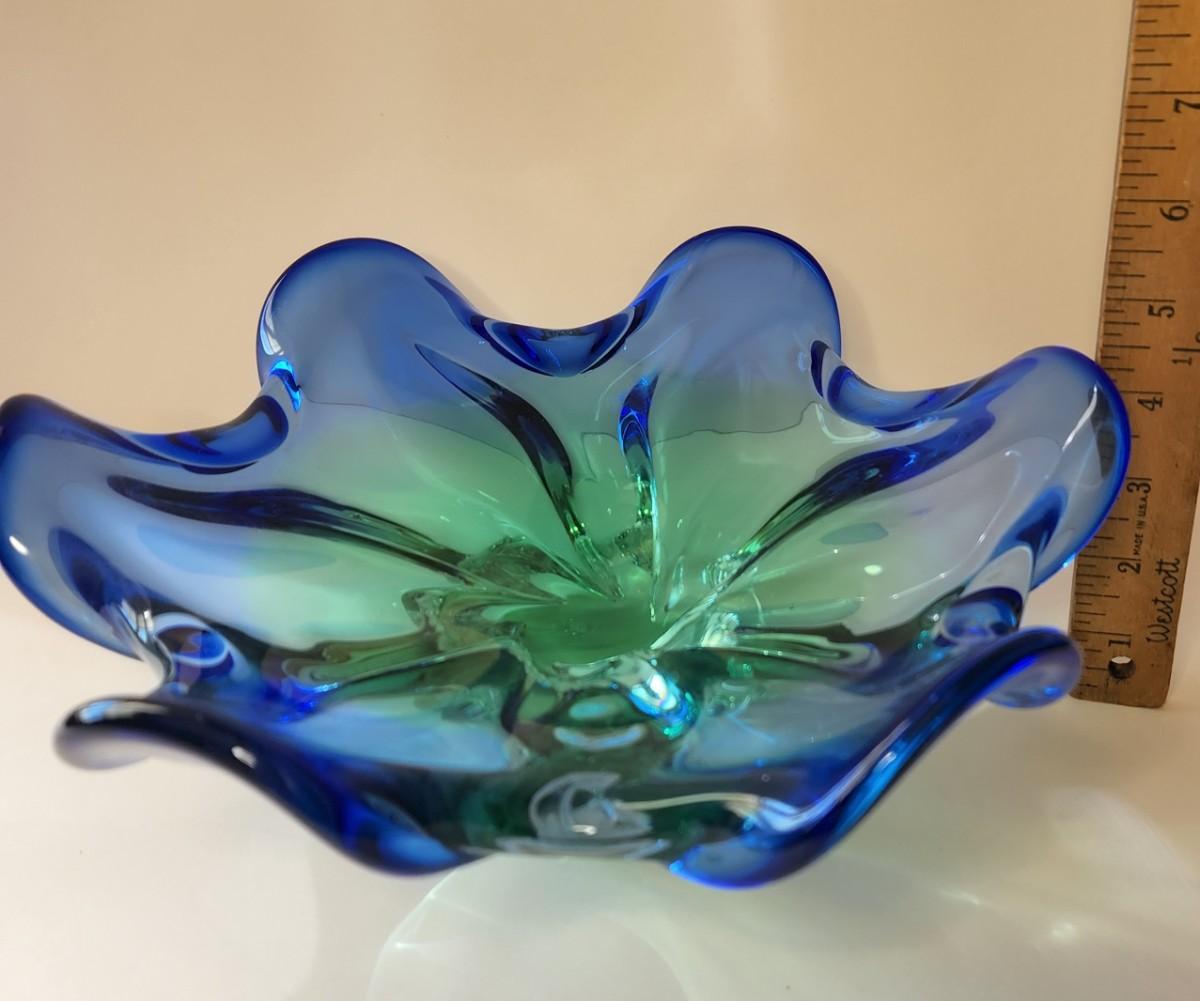 Beautiful green and blue flower glass bowl/decoration. Please see all pictures as they are the best representation of the items. The pictures show condition, measurements if taken, and what is included in the lot. Due to the large amount that we photograph and the time frame, we are not always able to take measurements. All items unless noted, are pre-owned and have been used. If you purchased furniture, you must bring help. We do not allow one person to carry large furniture out on their own. Bring help, tools and a truck for the safety of our client’s homes, and your personal safety. Any damages that result to the property including walls, and floors due to moving of the furniture will be charged to the buyer. Company policy. Thank you.