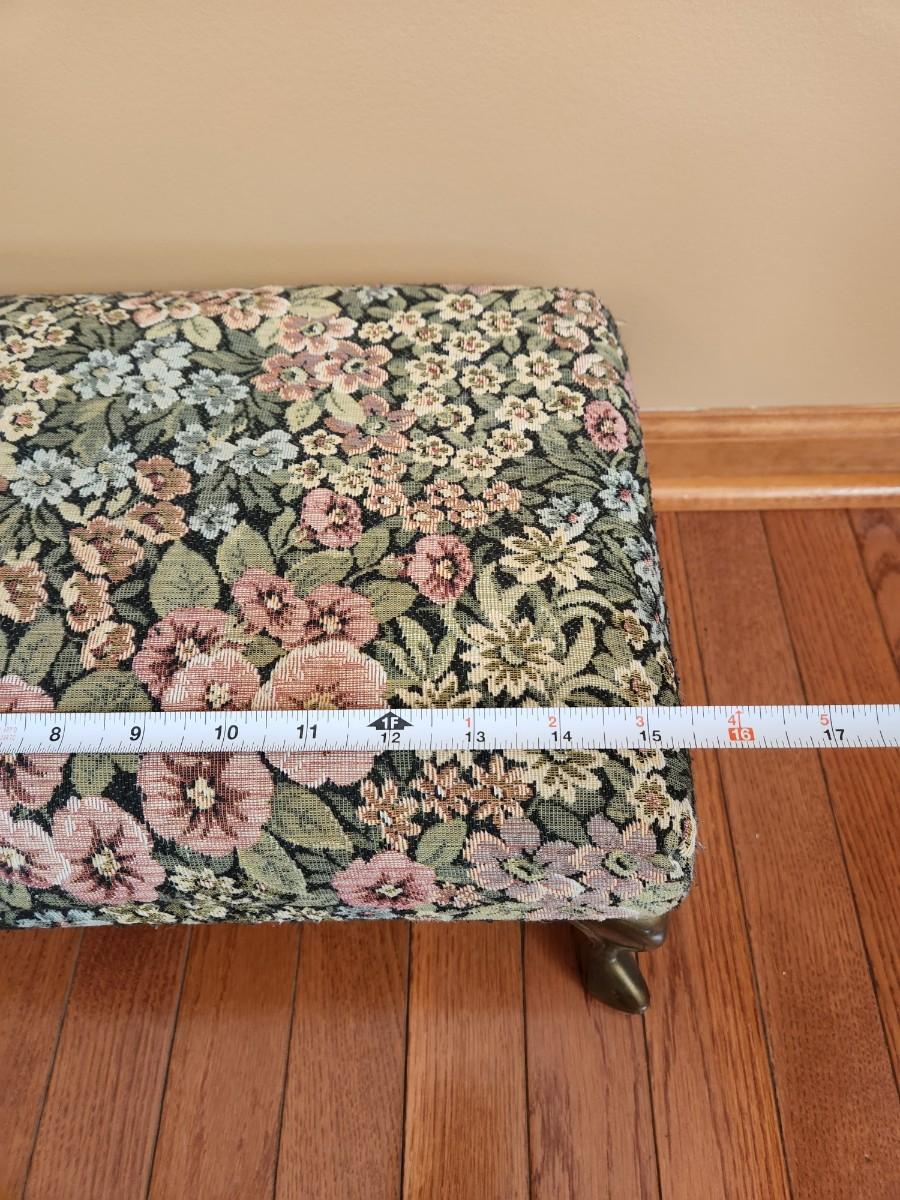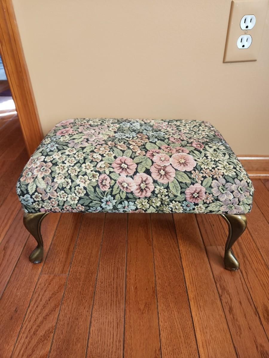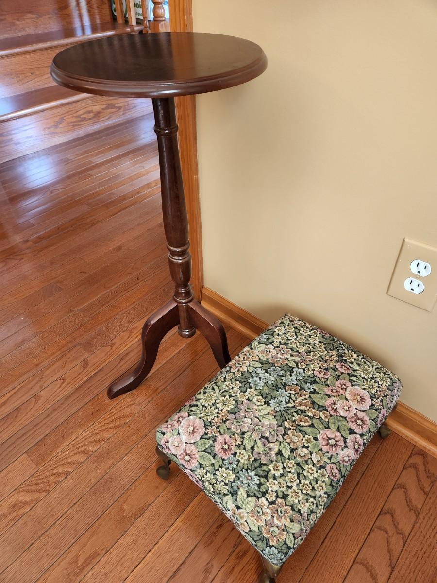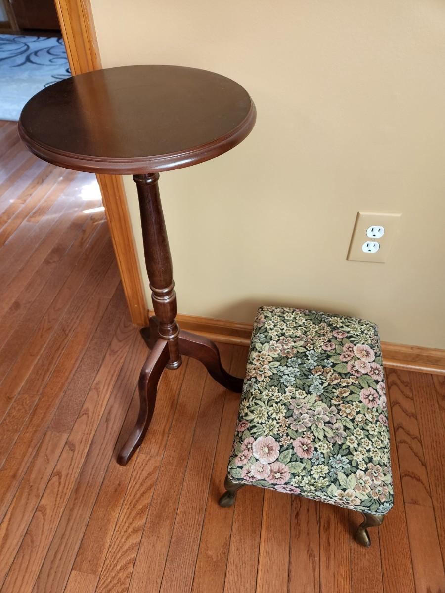 LOT 14M: Wood Plant Stand/Floral Fabric Foot Stool