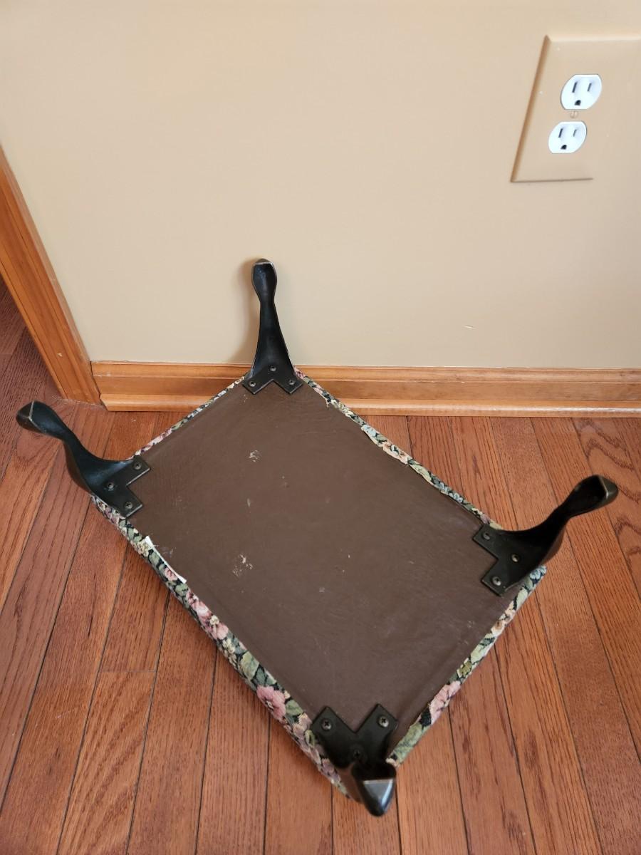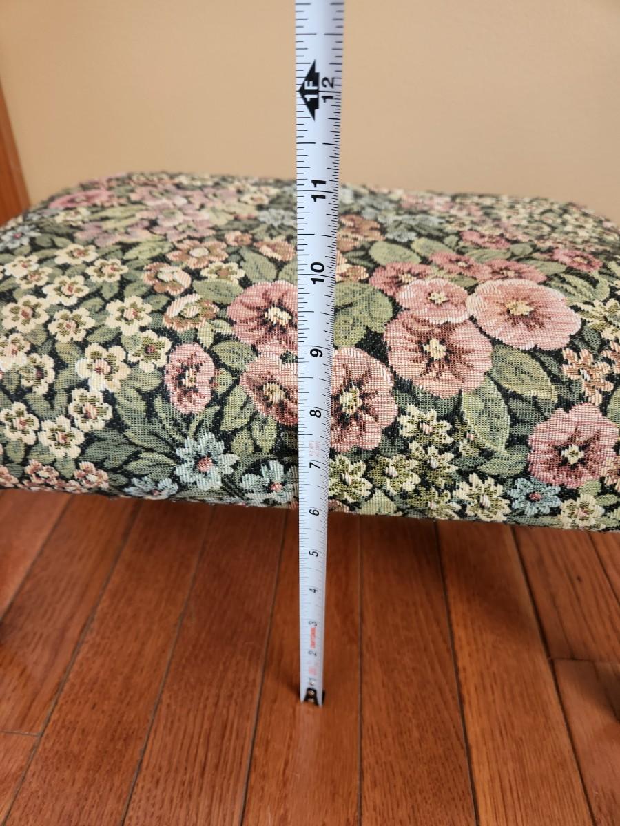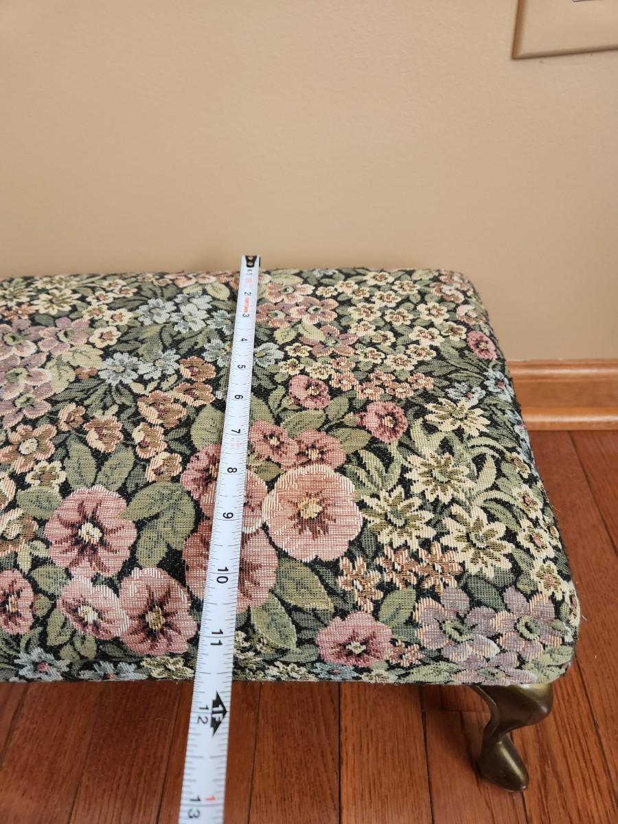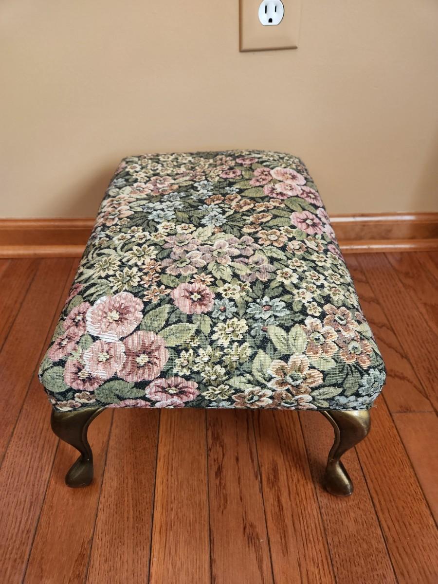 LOT 14M: Wood Plant Stand/Floral Fabric Foot Stool