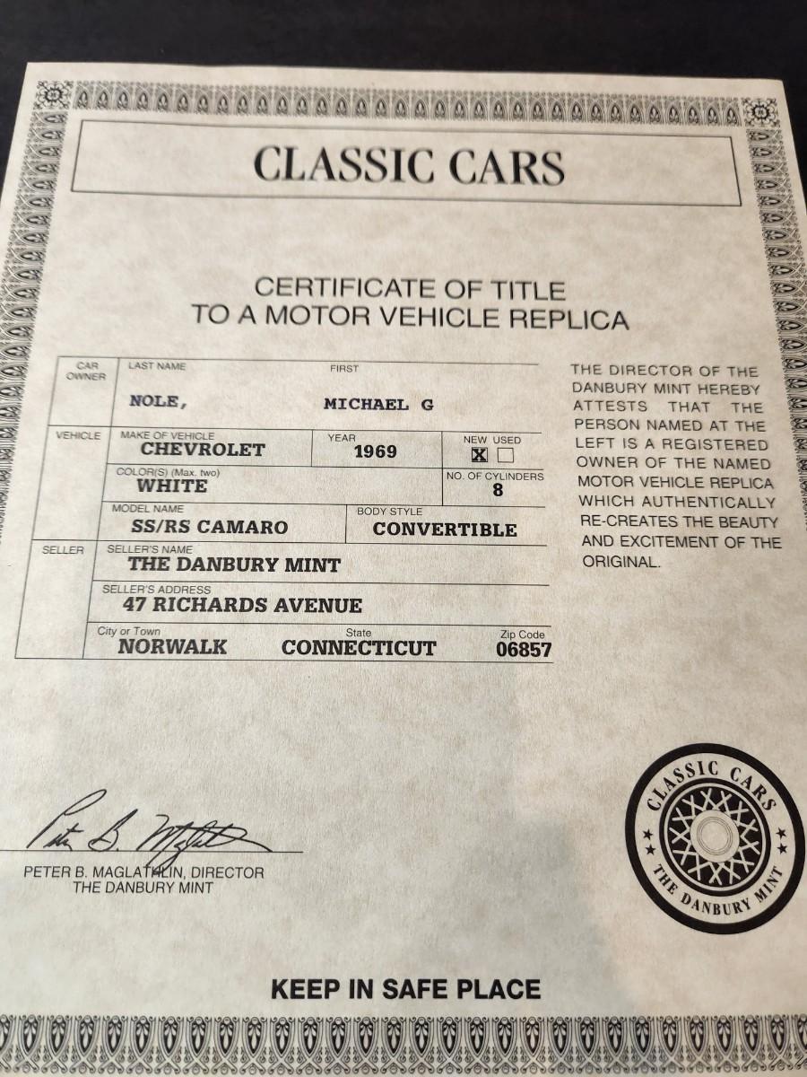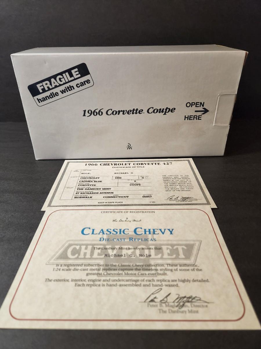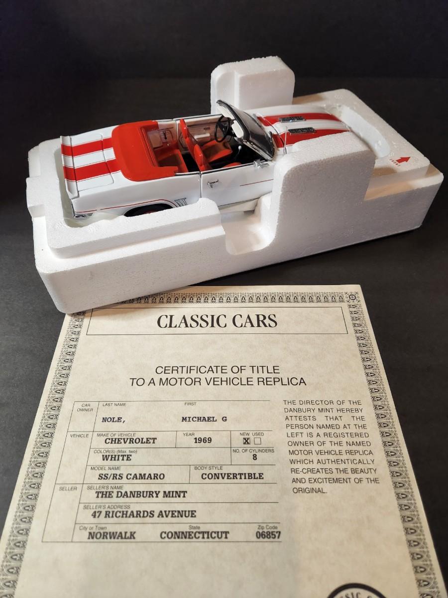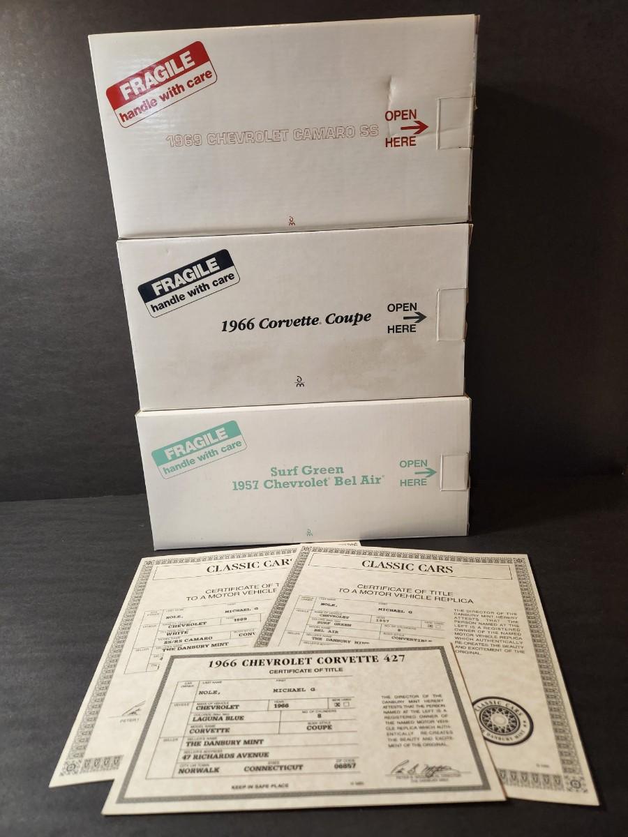 LOT 21M: Danbury Mint Diecast Model Cars: Camero, Corvette Coupe, Chevy Bel Air