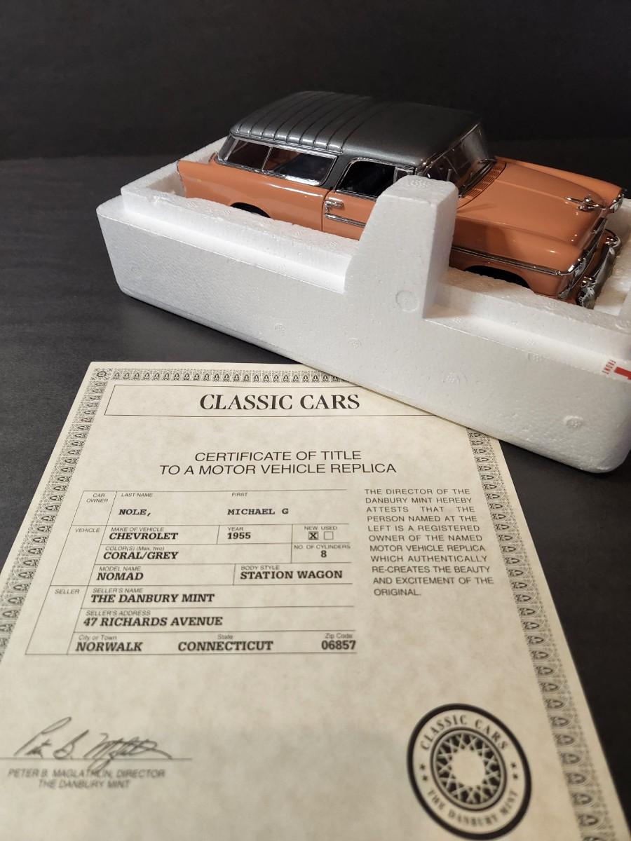 LOT 26M: Danbury Mint Diecast Model Cars : Chevrolet Bel Air Nomad, Corvette Nomad Custom
