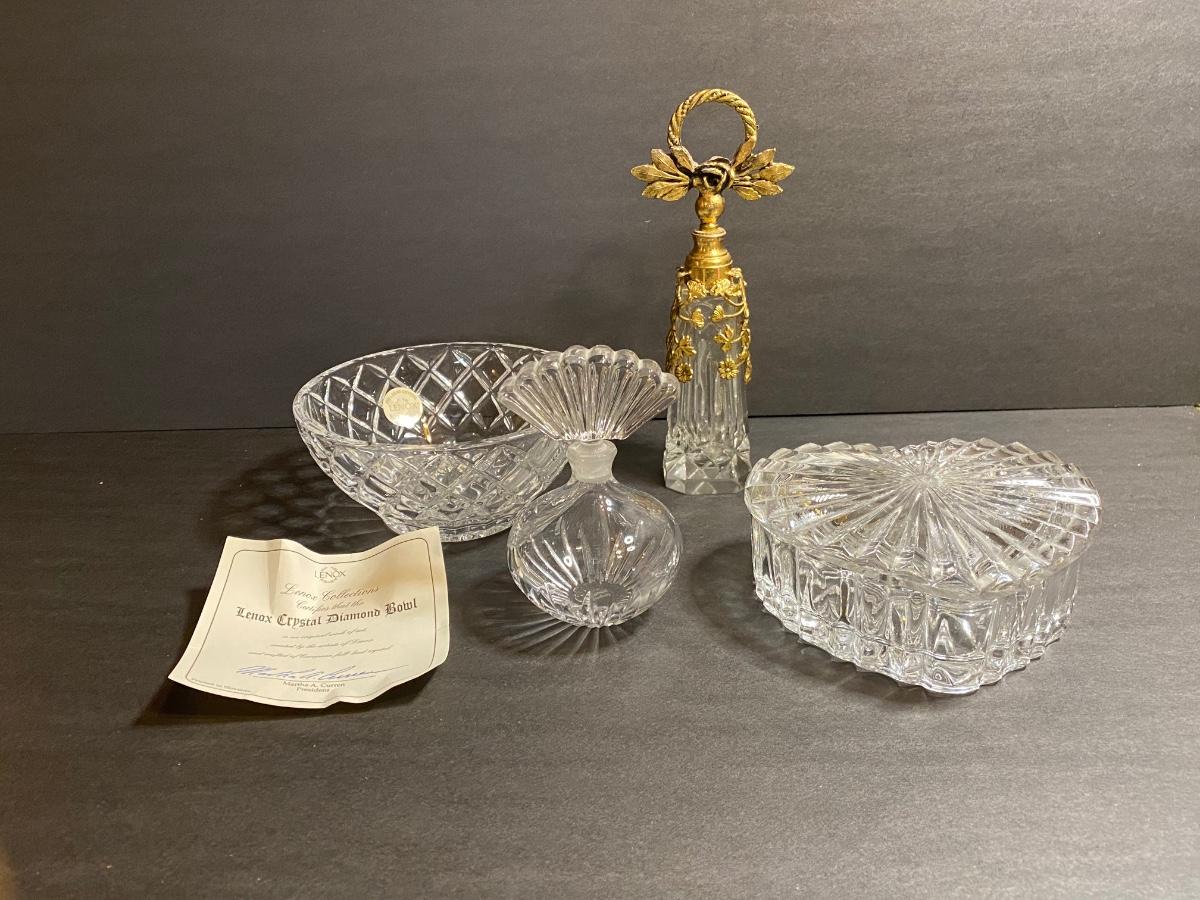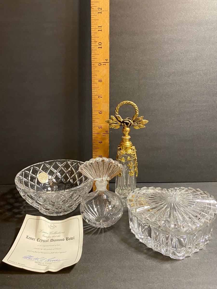 Lot of perfume bottles, trinket box, and small Lenox bowl. Please see all pictures as they are the best representation of the items. The pictures show condition, measurements if taken, and what is included in the lot. Due to the large amount that we photograph and the time frame, we are not always able to take measurements. All items unless noted, are pre-owned and have been used. If you purchased furniture, you must bring help. We do not allow one person to carry large furniture out on their own. Bring help, tools and a truck for the safety of our client’s homes, and your personal safety. Any damages that result to the property including walls, and floors due to moving of the furniture will be charged to the buyer. Company policy. Thank you.