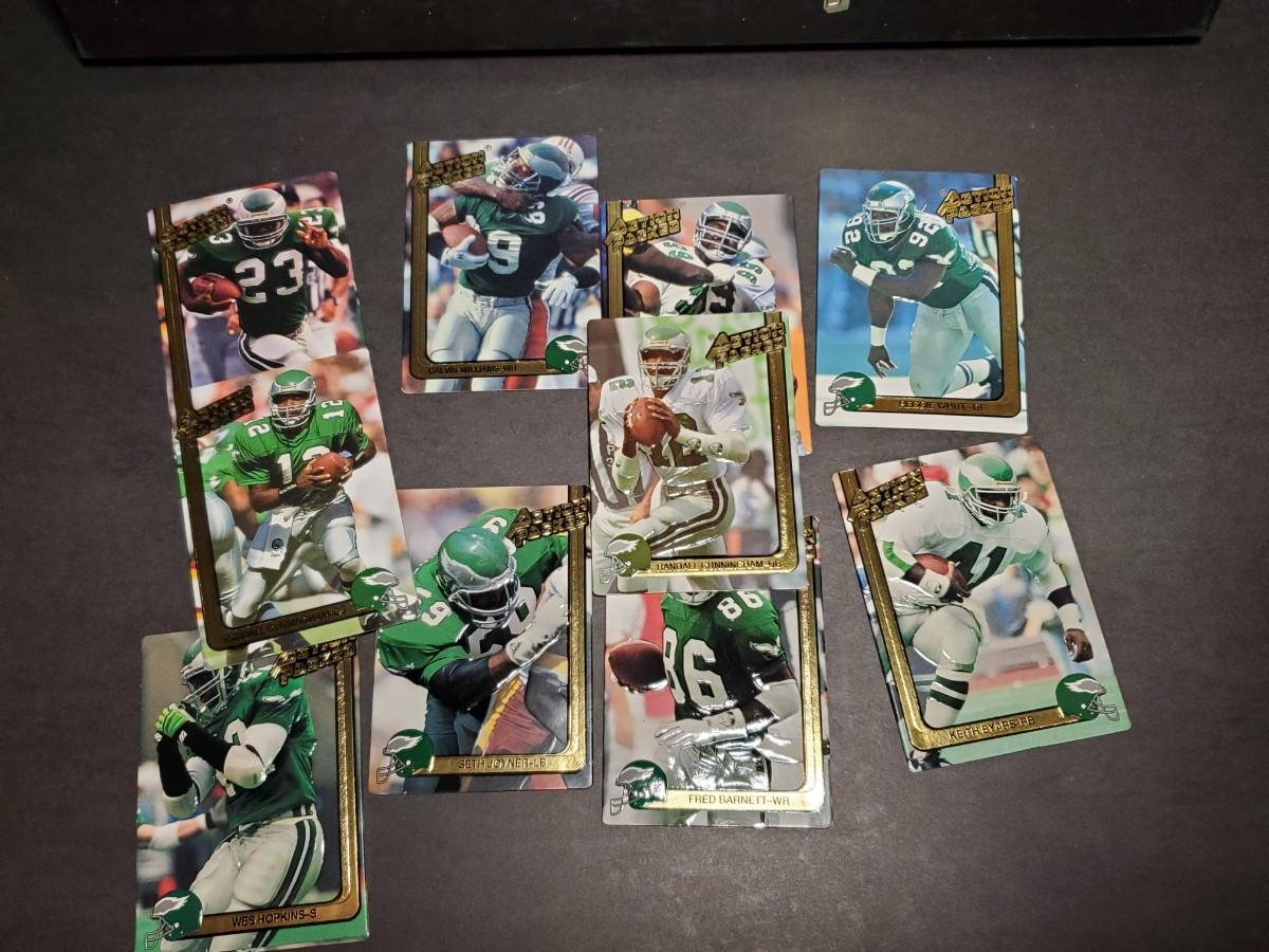 There is a stack of cards for each team. The Eagles is an example. Please see all pictures as they are the best representation of the items. The pictures show condition, measurements if taken, and what is included in the lot. Due to the large amount that we photograph and the time frame, we are not always able to take measurements. All items unless noted, are pre-owned and have been used. If you purchased furniture, you must bring help. We do not allow one person to carry large furniture out on their own. Bring help, tools and a truck for the safety of our client’s homes, and your personal safety. Any damages that result to the property including walls, and floors due to moving of the furniture will be charged to the buyer. Company policy. Thank you.
