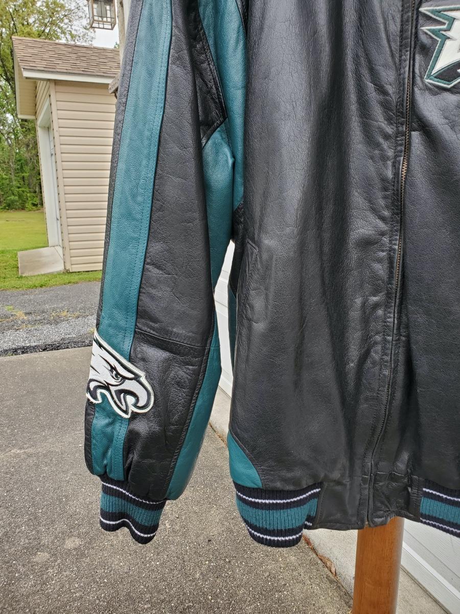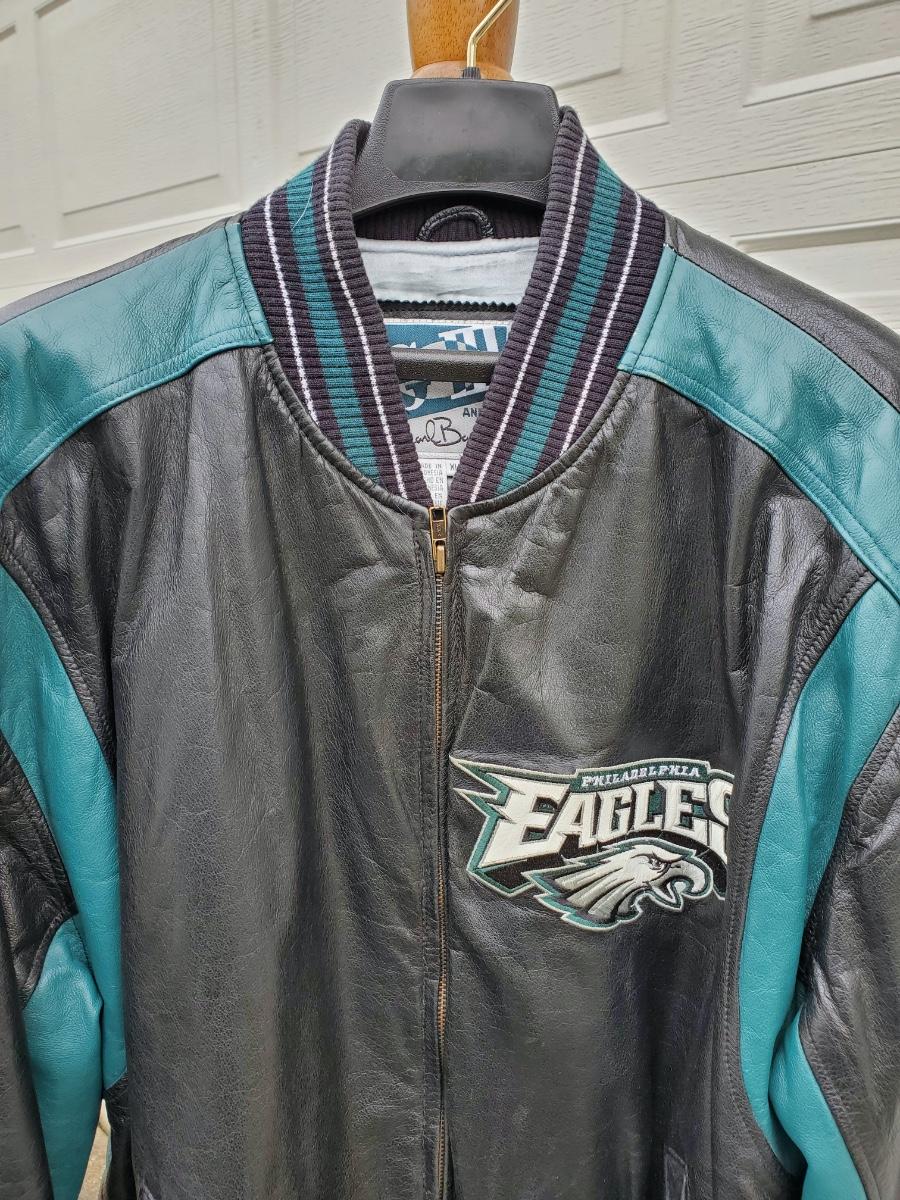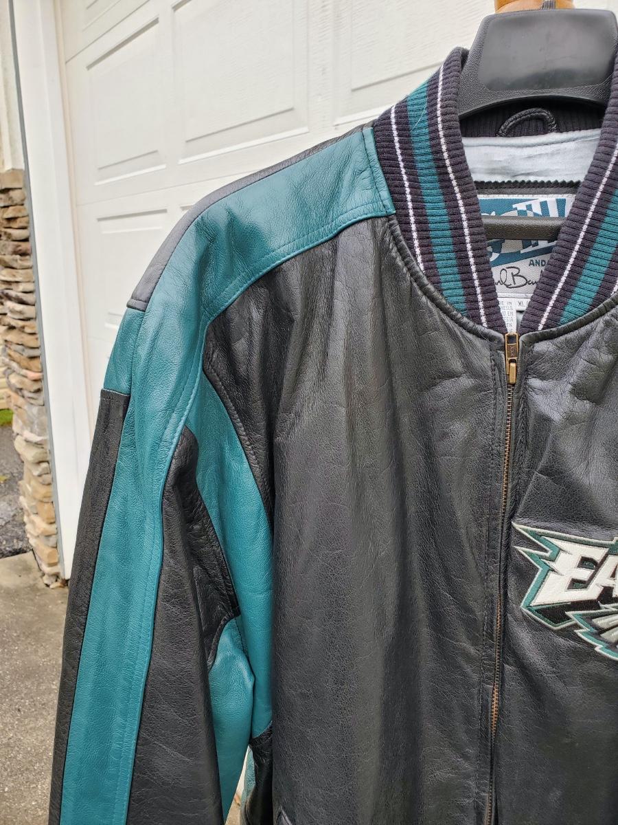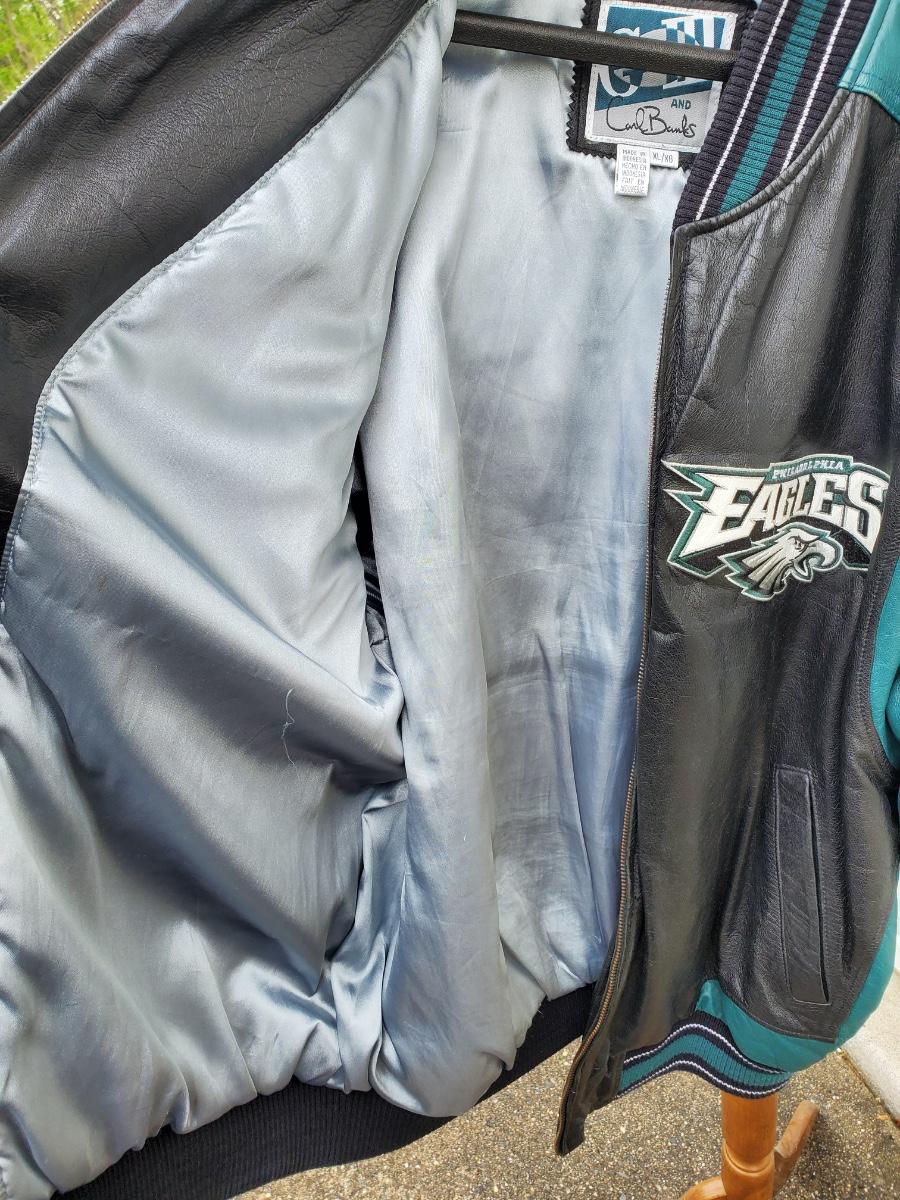 LOT 115: Mens XL Carl Banks Vintage Leather Eagles Coat
