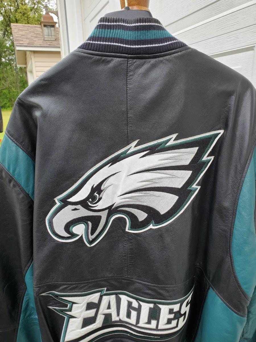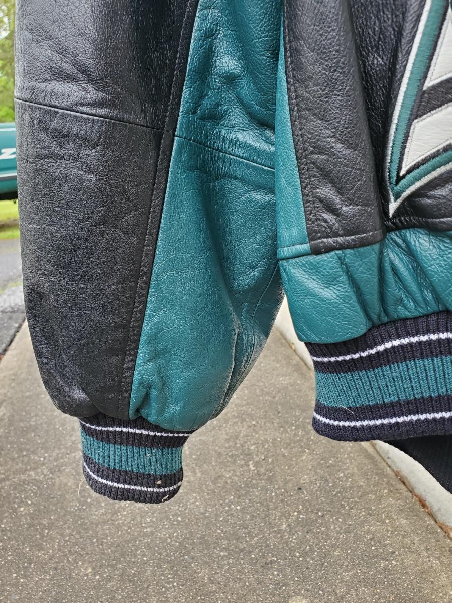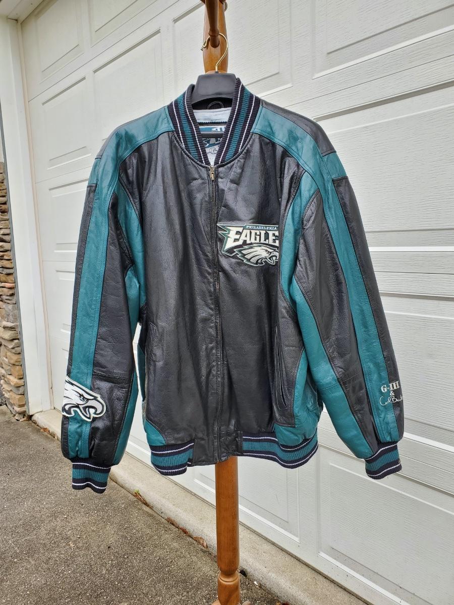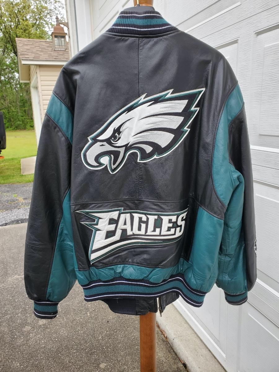 LOT 115: Mens XL Carl Banks Vintage Leather Eagles Coat