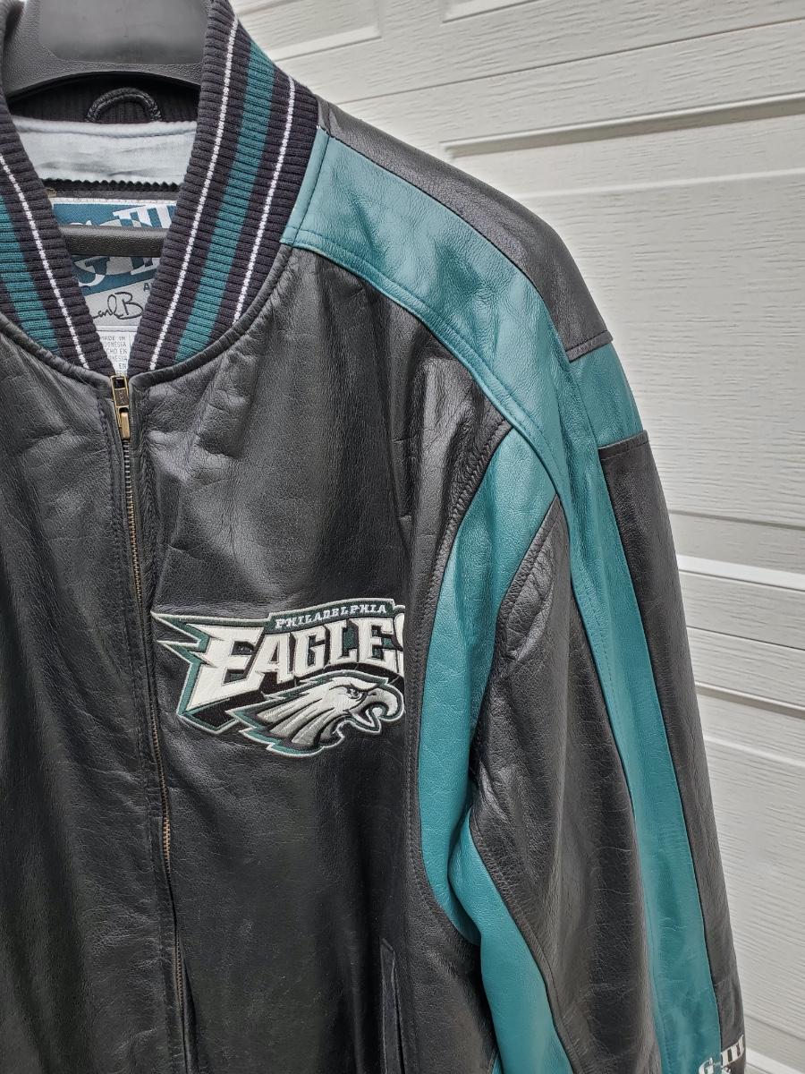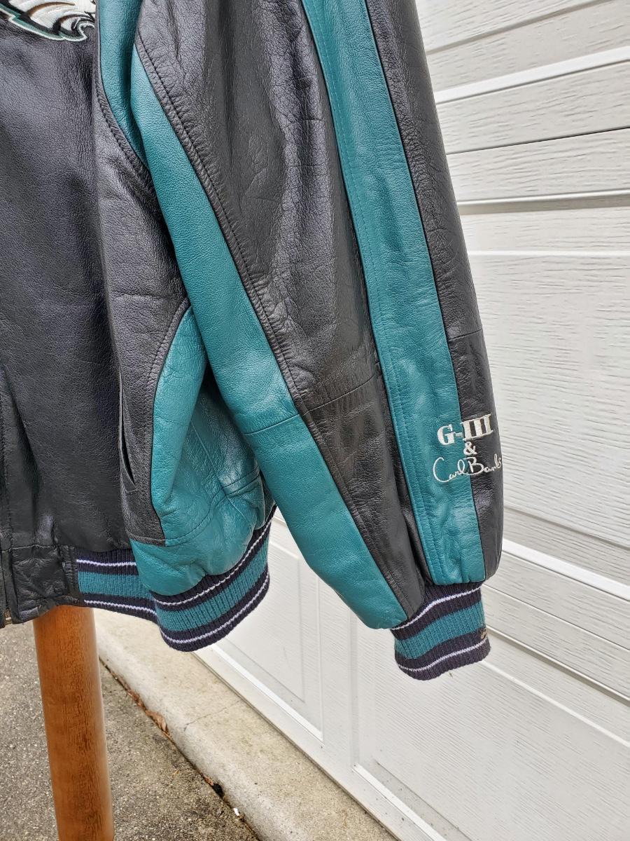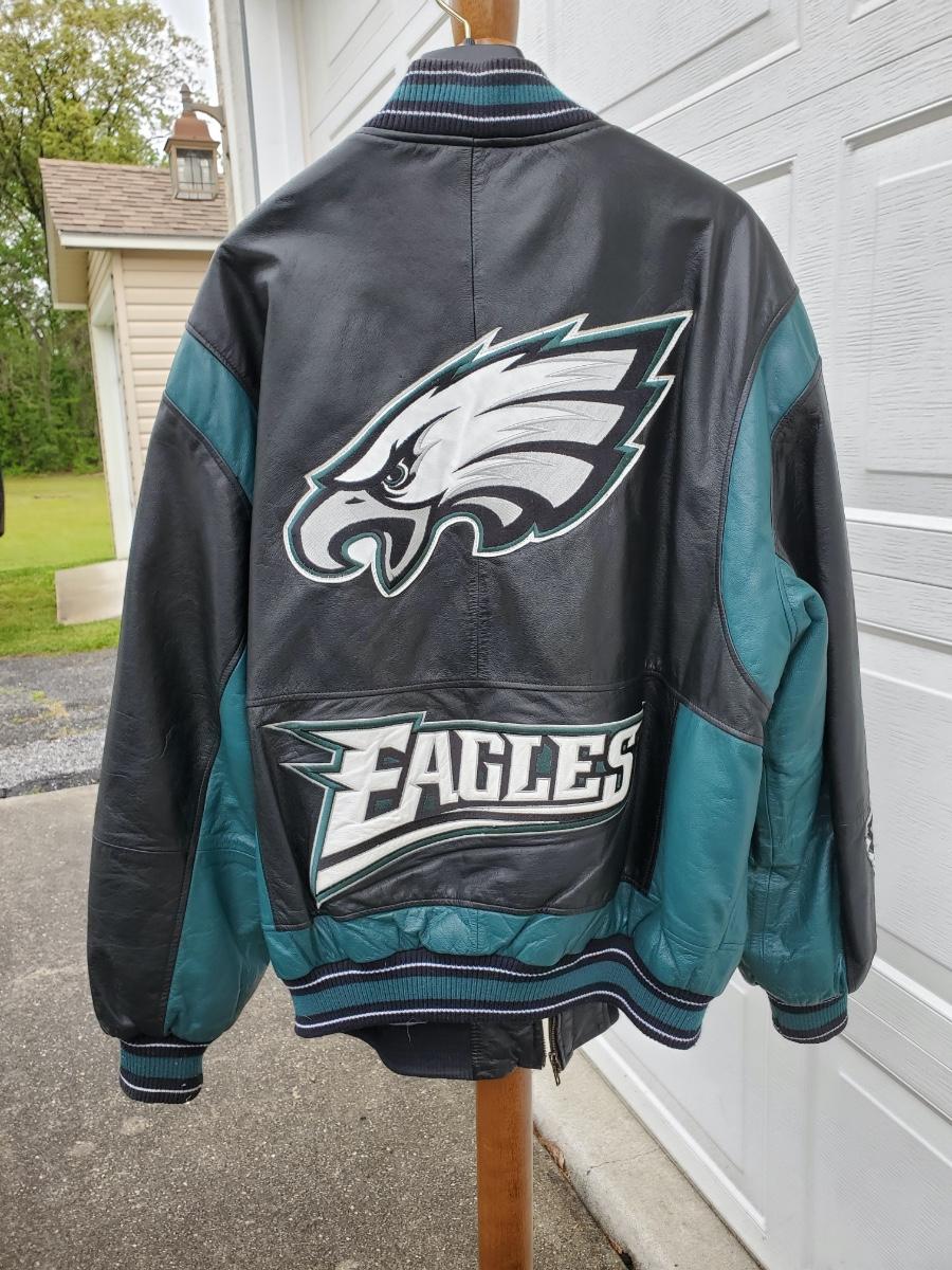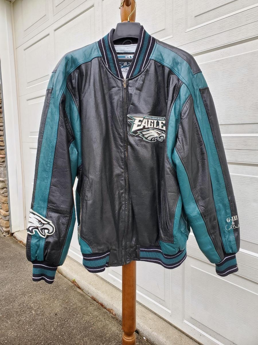 LOT 115: Mens XL Carl Banks Vintage Leather Eagles Coat