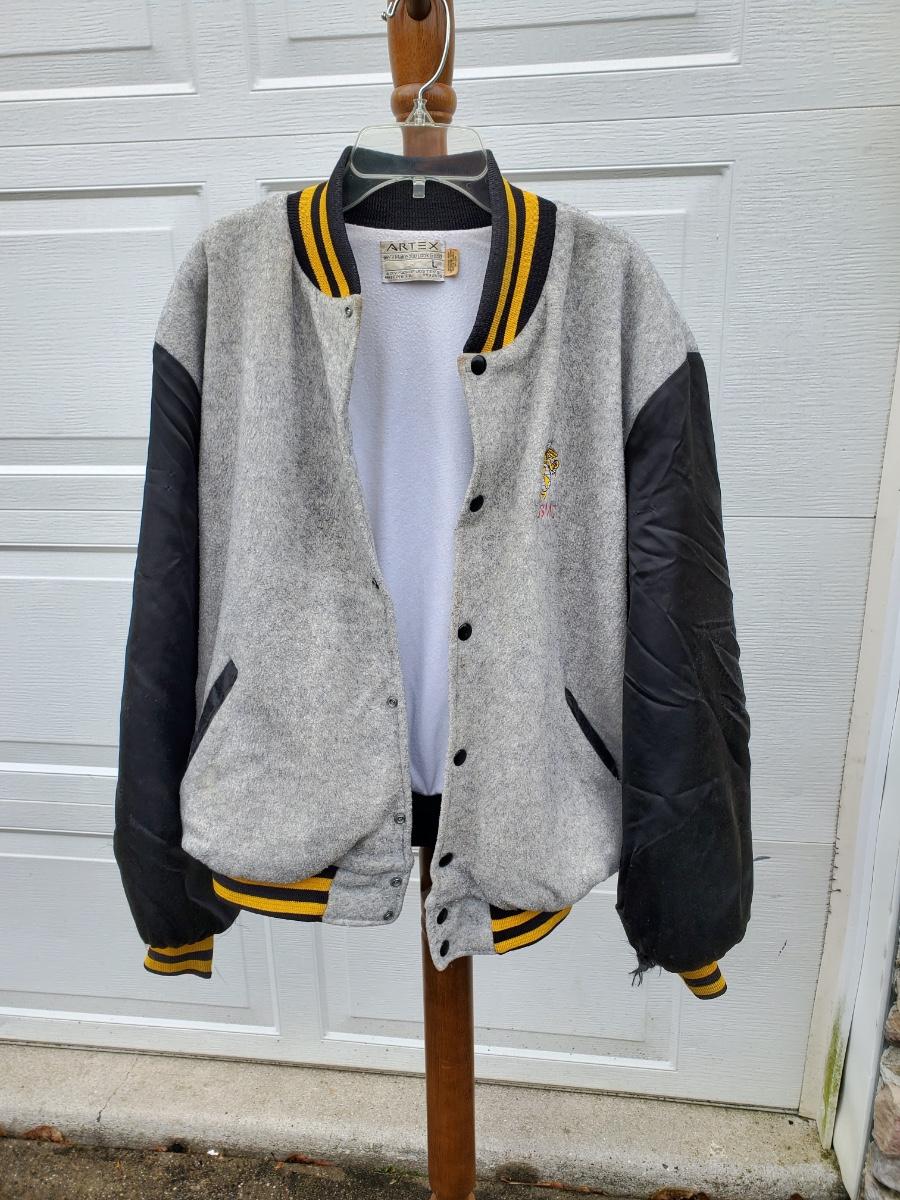 This is a vintage jacket and does show some wear. It has faint stains (may just need to be washed) and the sleeve needs a repair. Fun for man-cave decor or use. Vintage and fits more like a medium size. Please see all pictures as they are the best representation of the items. The pictures show condition, measurements if taken, and what is included in the lot. Due to the large amount that we photograph and the time frame, we are not always able to take measurements. All items unless noted, are pre-owned and have been used. If you purchased furniture, you must bring help. We do not allow one person to carry large furniture out on their own. Bring help, tools and a truck for the safety of our client’s homes, and your personal safety. Any damages that result to the property including walls, and floors due to moving of the furniture will be charged to the buyer. Company policy. Thank you.