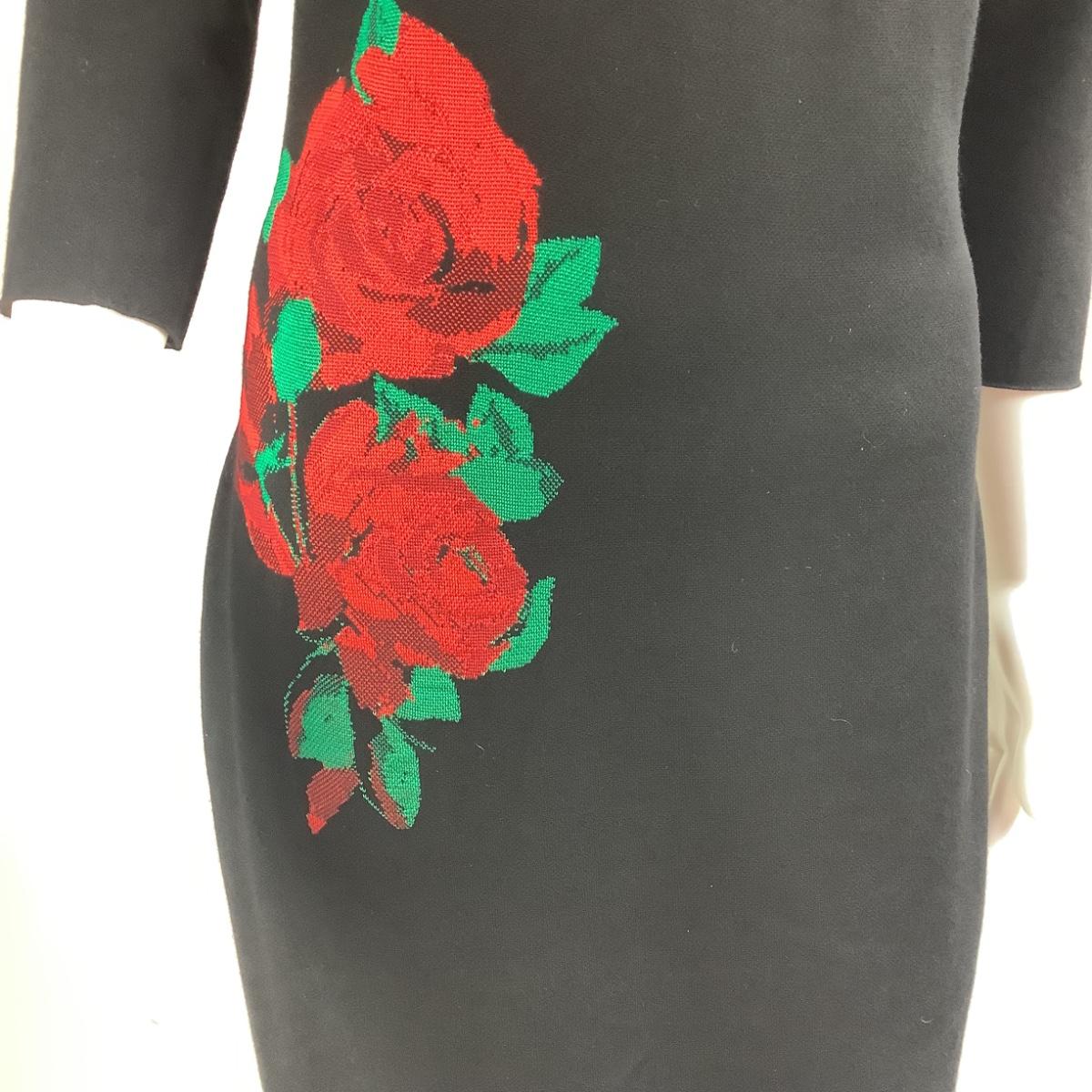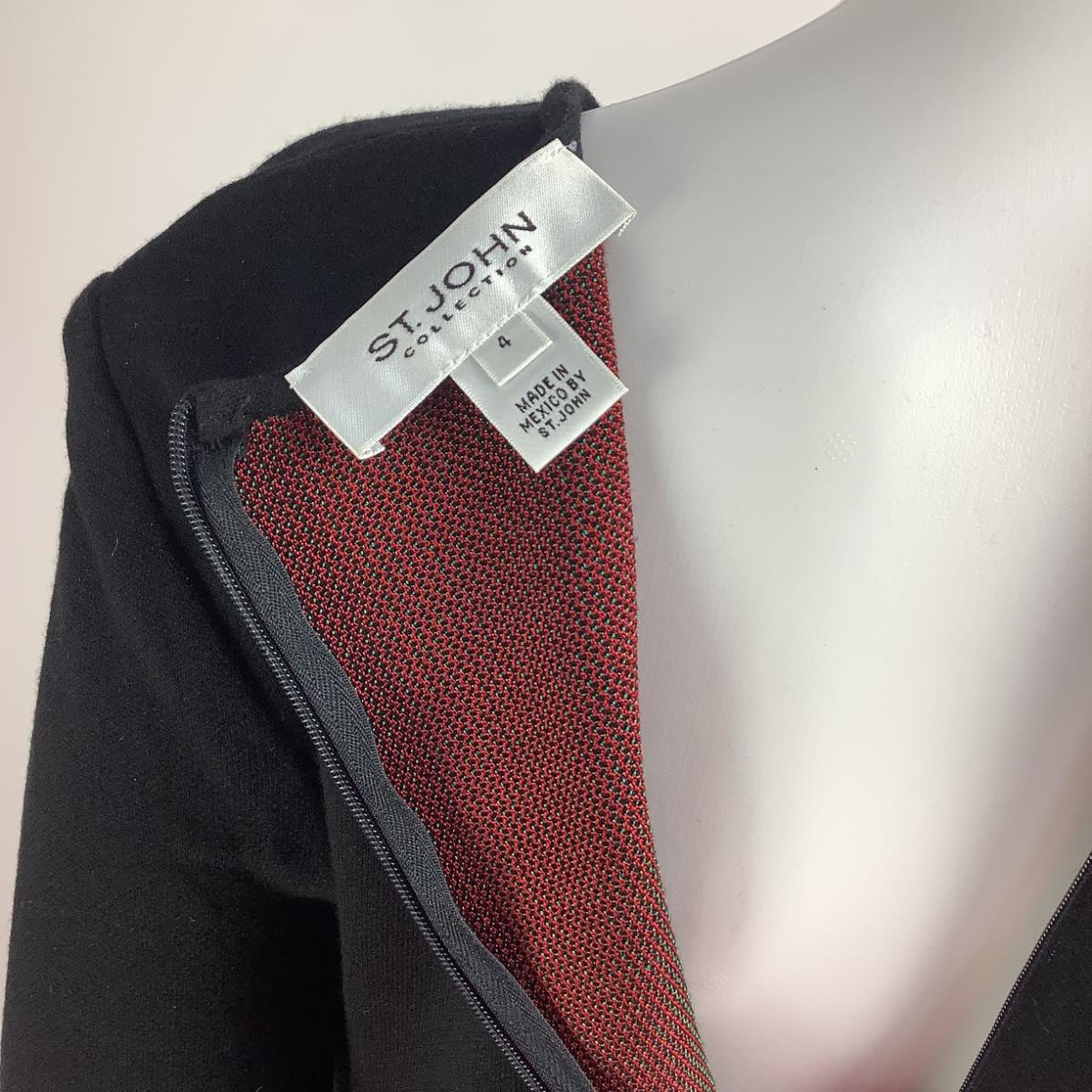 Lot 718. St. John Red Rose Knit Dress, 3/4 length Sleeve