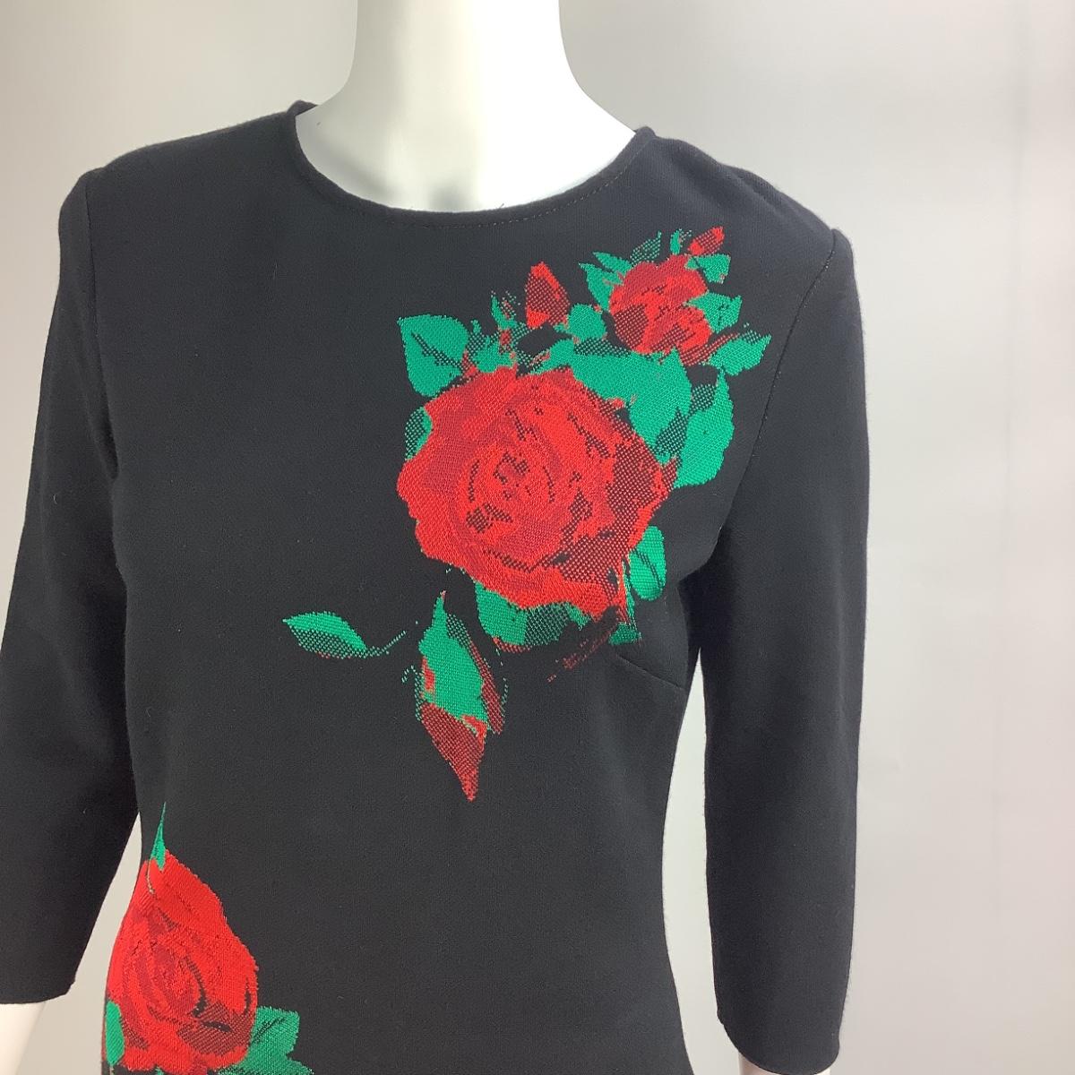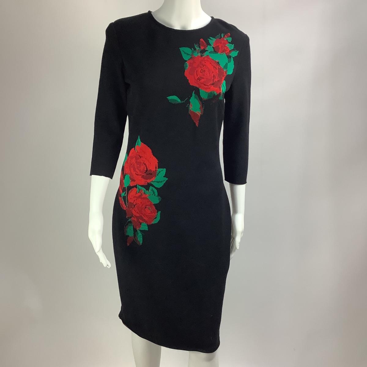 St. John Red Rose Knit Dress, 3/4 length Sleeve, Rayon Blend