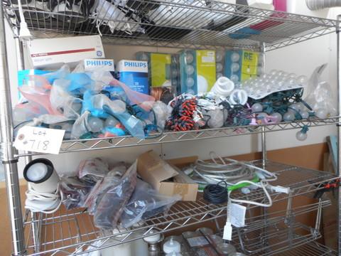 Lot 718 - Stainless Bakers Rack w/ Misc. Contents