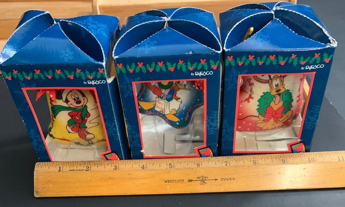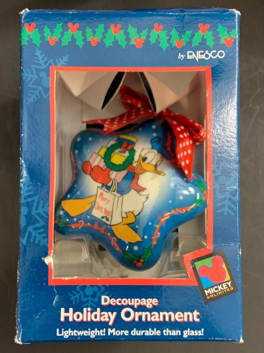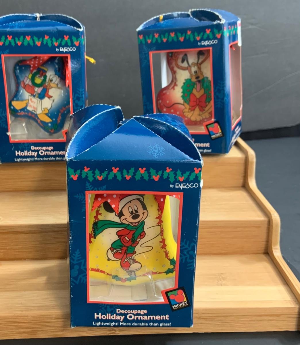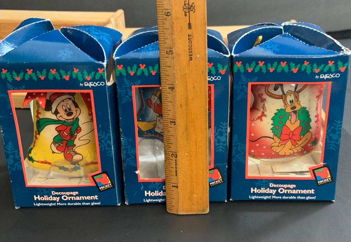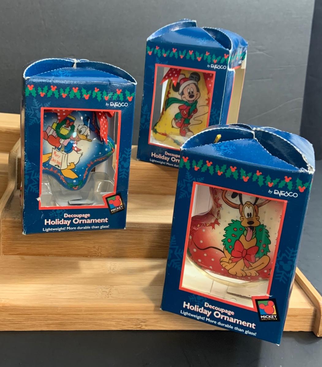 LOT:12G: 3 ENESCO Disney Christmas Decoupage Ornaments.