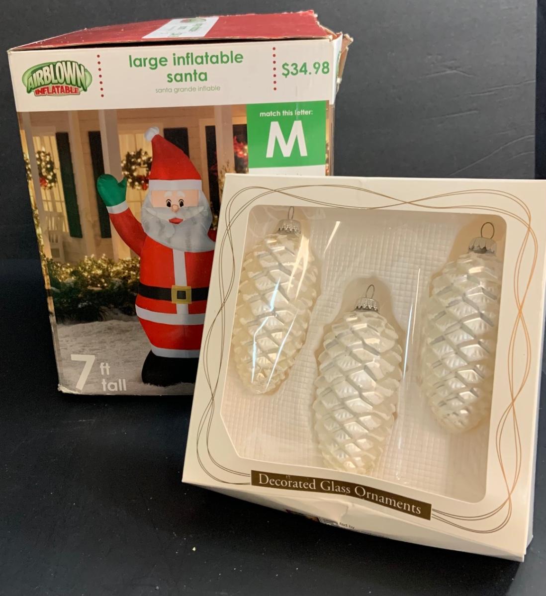 LOT:14G: 7’ Inflatable Santa and Pinecone Ornaments