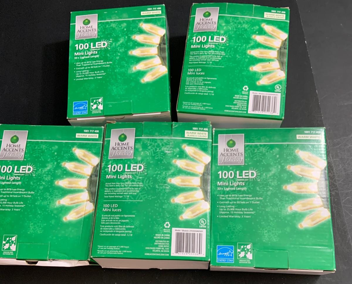LOT:15G: Lot of 5 Boxes of 100 LED Mini Lights
