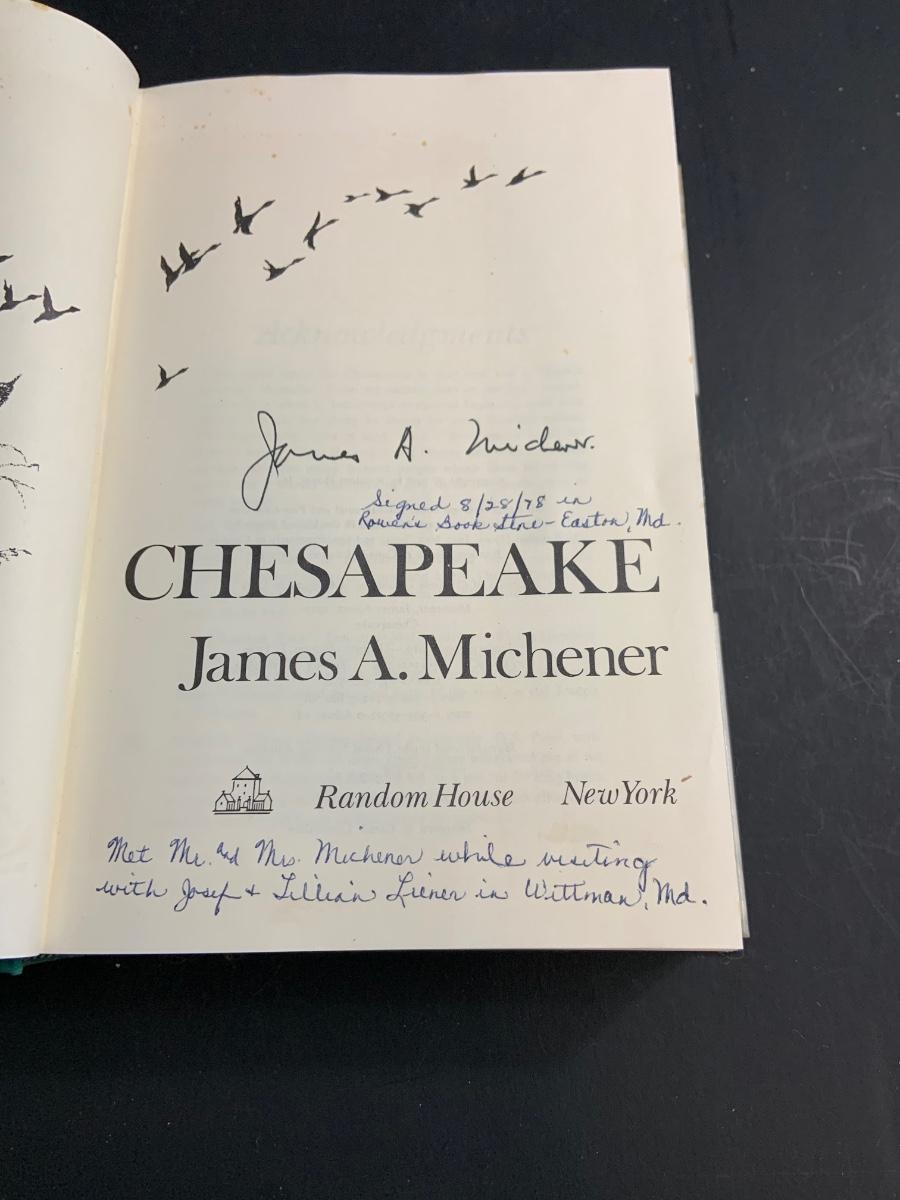 LOT:16G: Autographed Copy of James Mitchener Novel Chesapeake