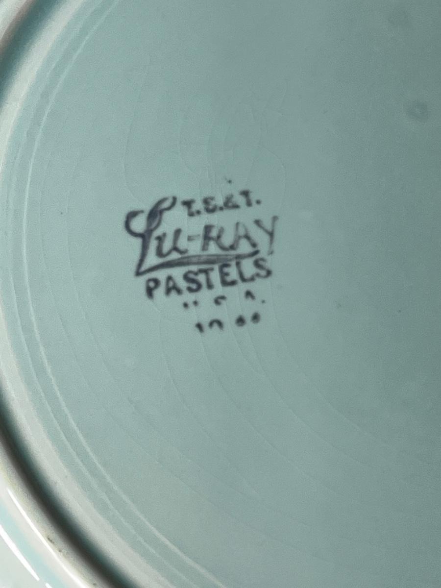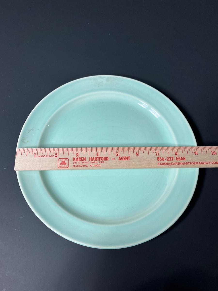 Eight Vintage Green LuRay Pastels Dinner Plates. Please see all pictures as they are the best representation of the items. The pictures show condition, measurements if taken, and what is included in the lot. Due to the large amount that we photograph and the time frame, we are not always able to take measurements. All items unless noted, are pre-owned and have been used. If you purchased furniture, you must bring help. We do not allow one person to carry large furniture out on their own. Bring help, tools and a truck for the safety of our client’s homes, and your personal safety. Any damages that result to the property including walls, and floors due to moving of the furniture will be charged to the buyer. Company policy. Thank you.