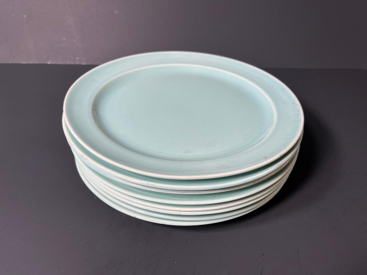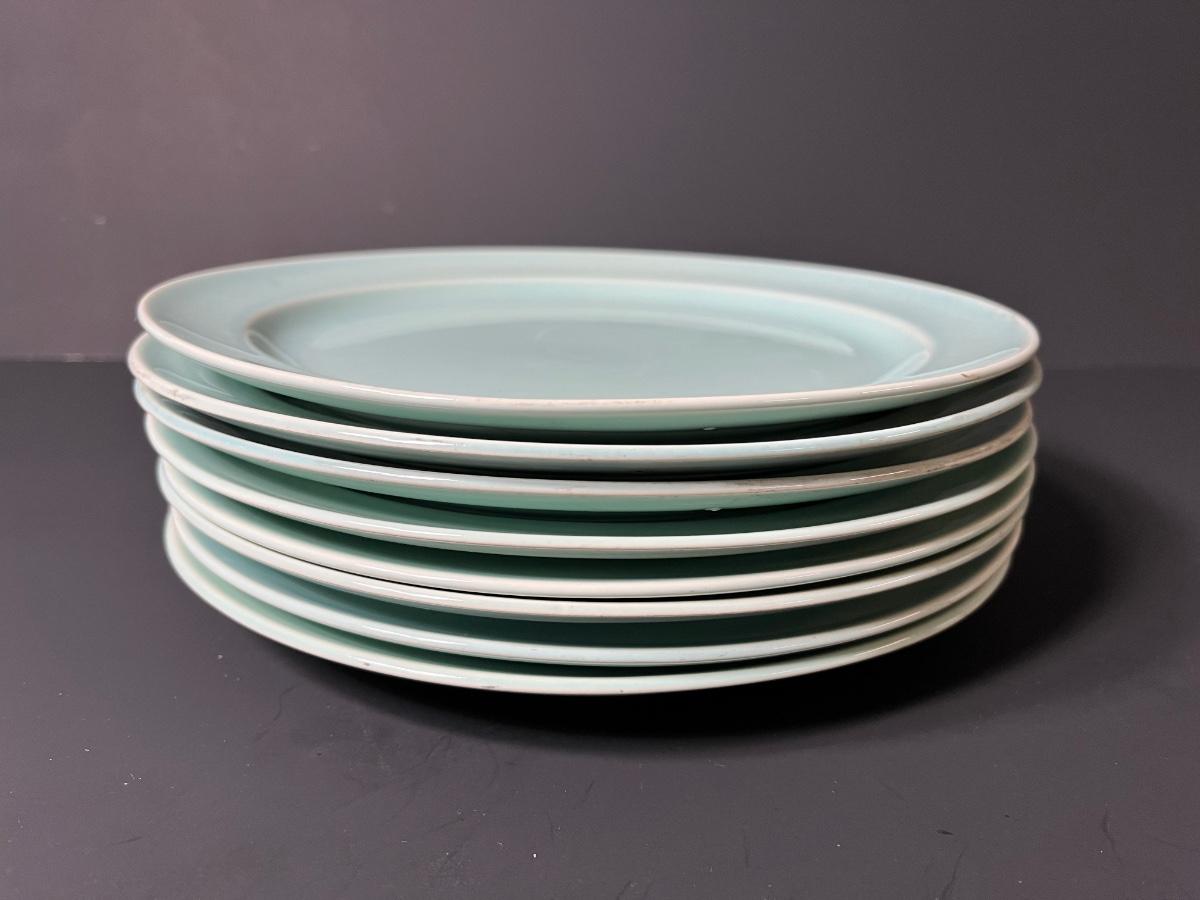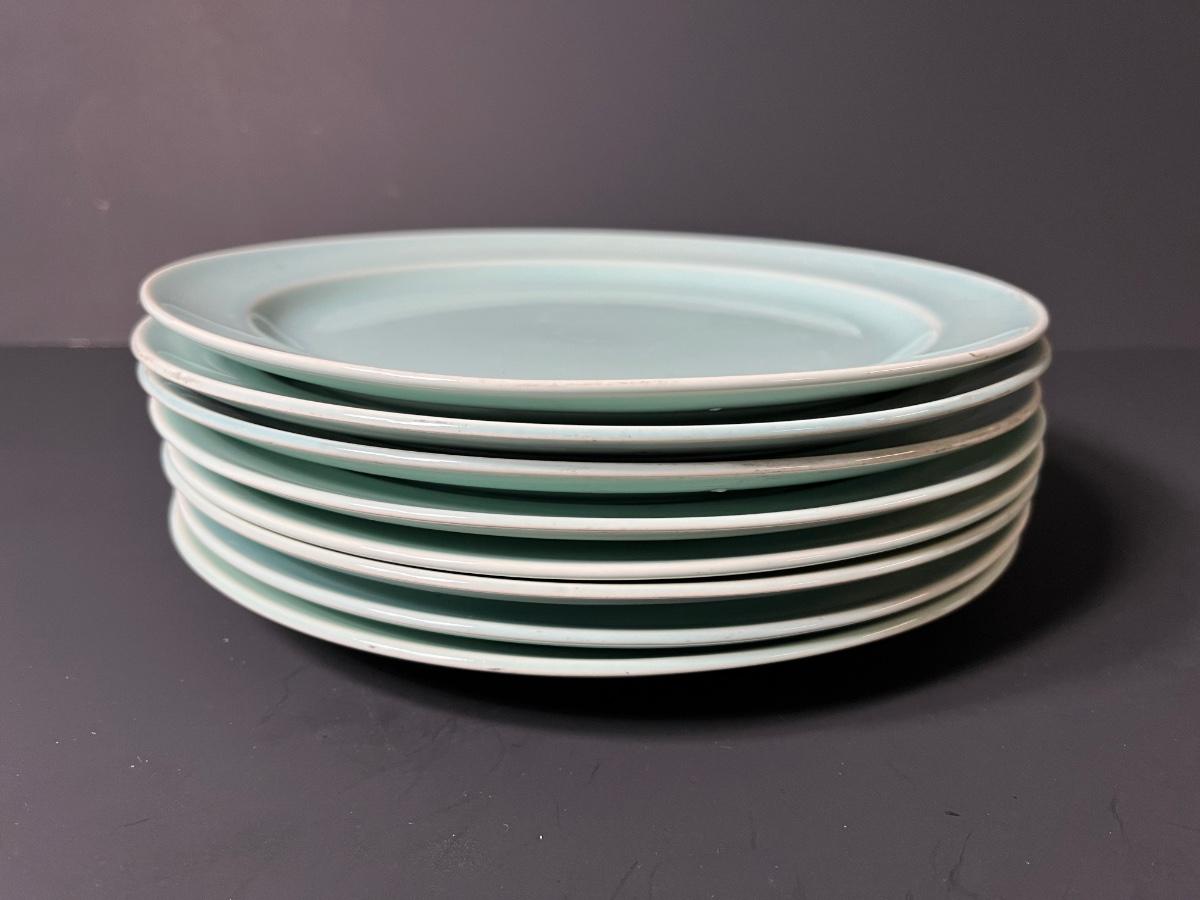 LOT 34J: Eight Vintage Green LuRay Pastels Dinner Plates