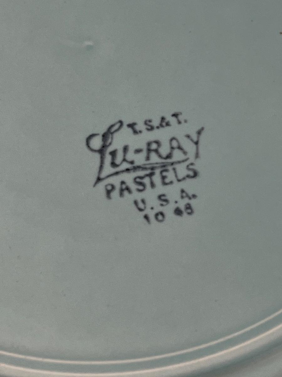 Green LuRay Vintage Pastels Dinner Plates (8). Please see all pictures as they are the best representation of the items. The pictures show condition, measurements if taken, and what is included in the lot. Due to the large amount that we photograph and the time frame, we are not always able to take measurements. All items unless noted, are pre-owned and have been used. If you purchased furniture, you must bring help. We do not allow one person to carry large furniture out on their own. Bring help, tools and a truck for the safety of our client’s homes, and your personal safety. Any damages that result to the property including walls, and floors due to moving of the furniture will be charged to the buyer. Company policy. Thank you.