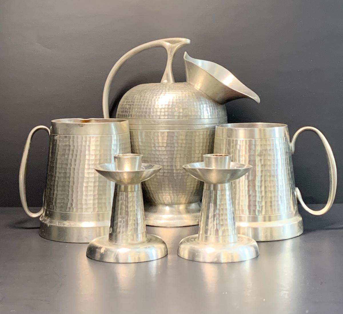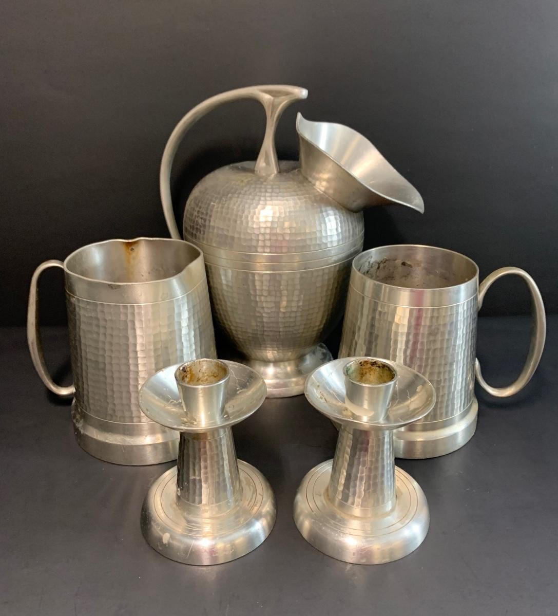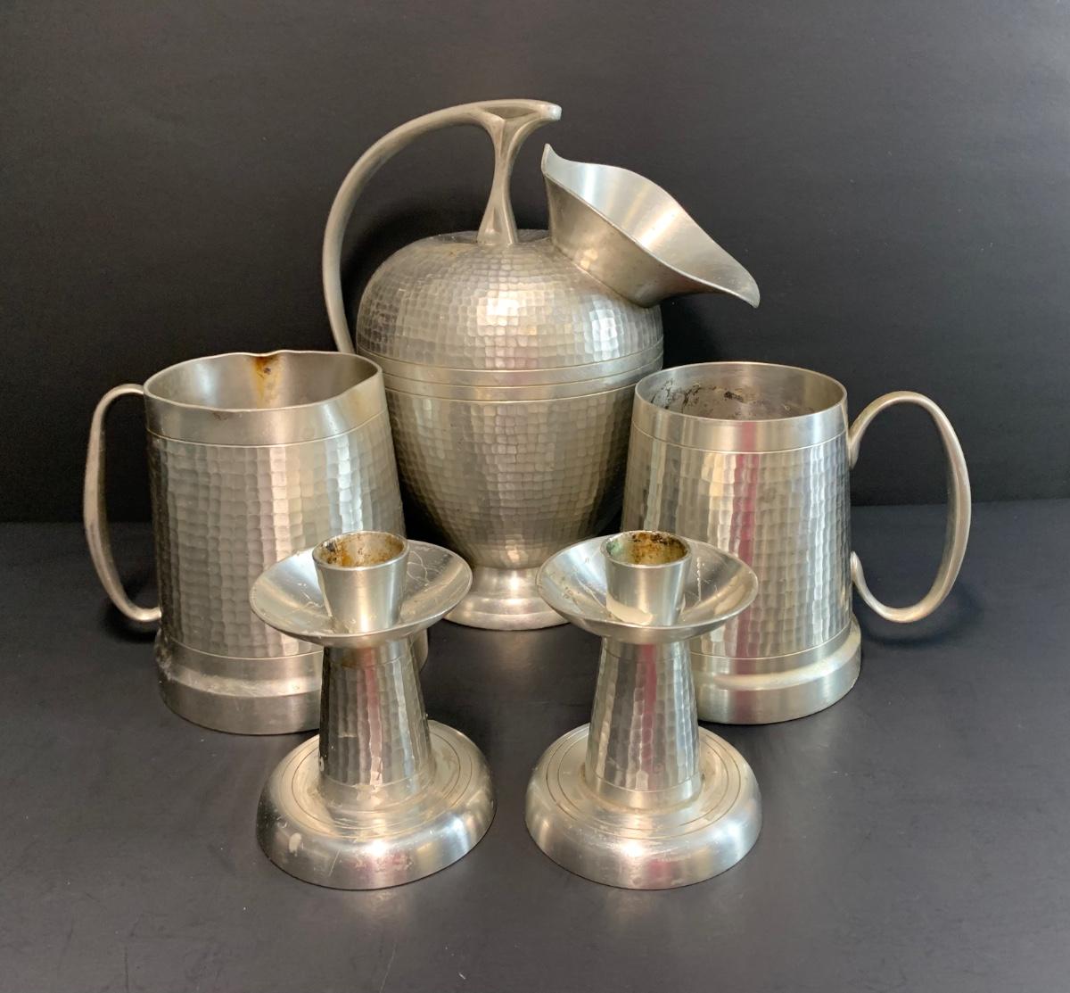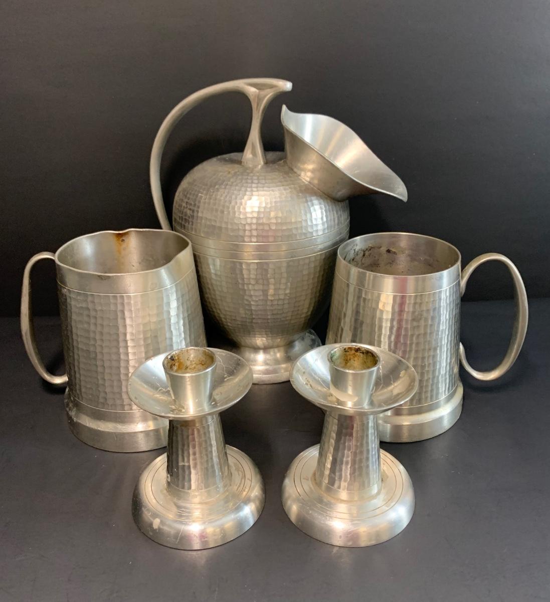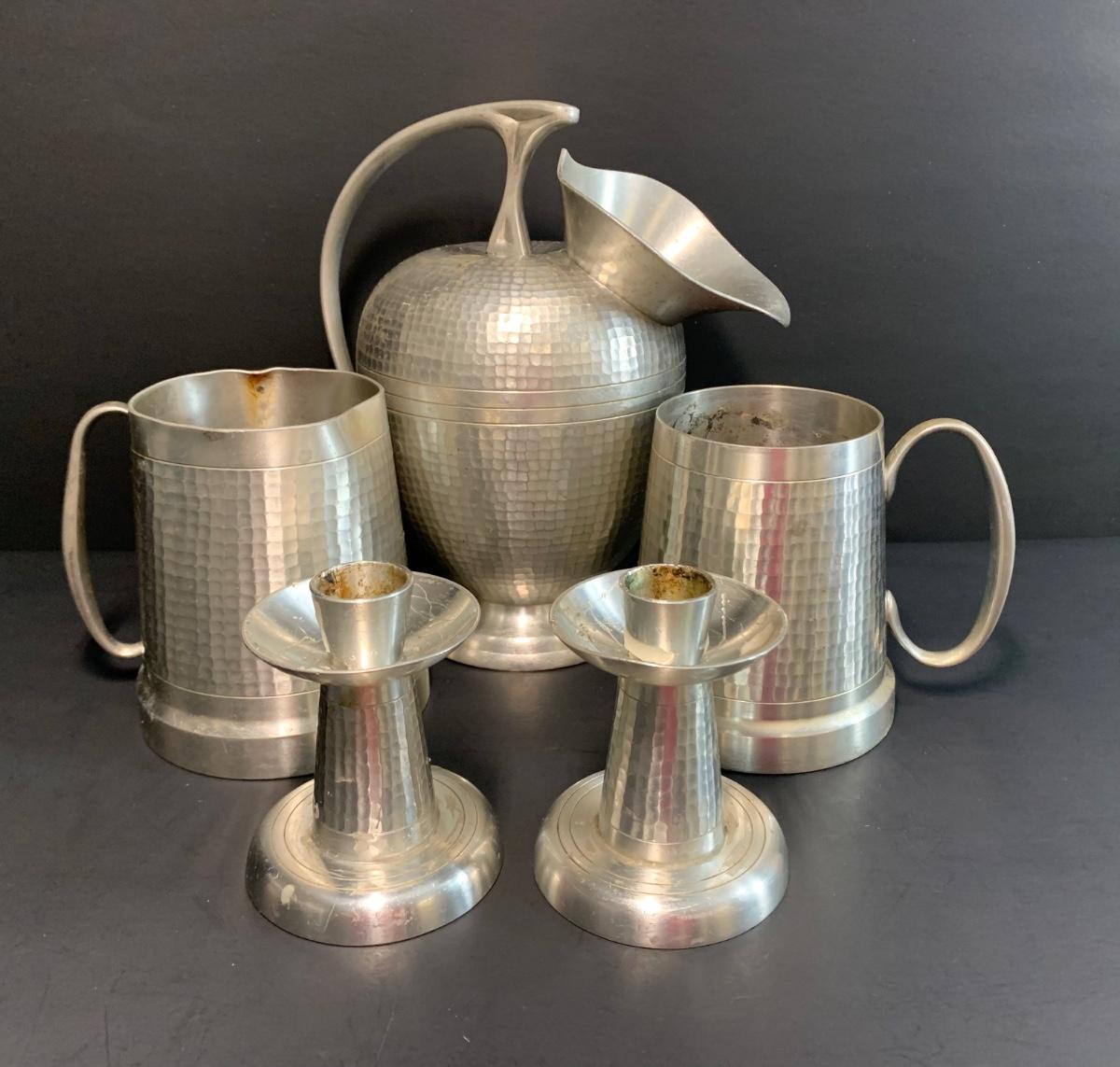 LOT 53R: Selangor Pewter Collection: Pitcher, Candlesticks & More