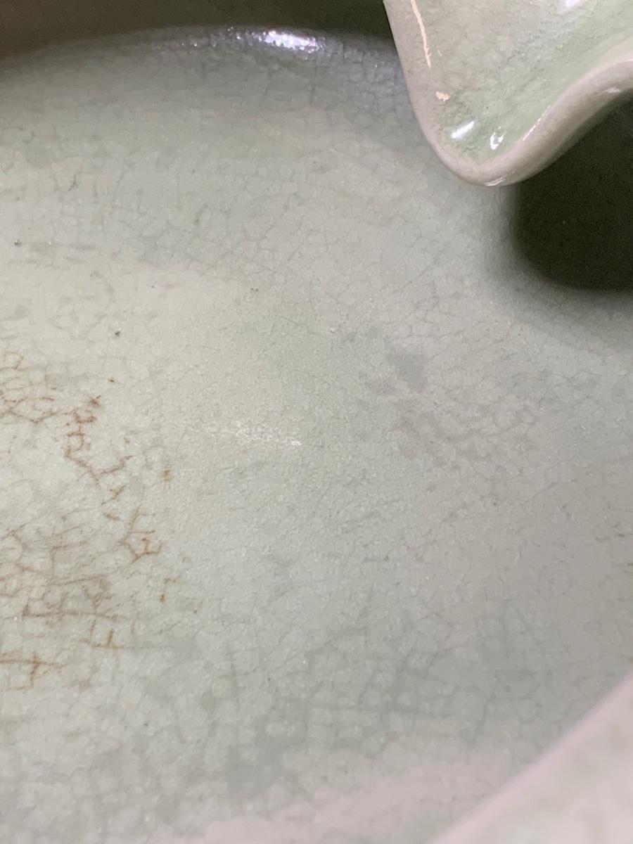 Uniquely shaped light green Celadon bowl /planter