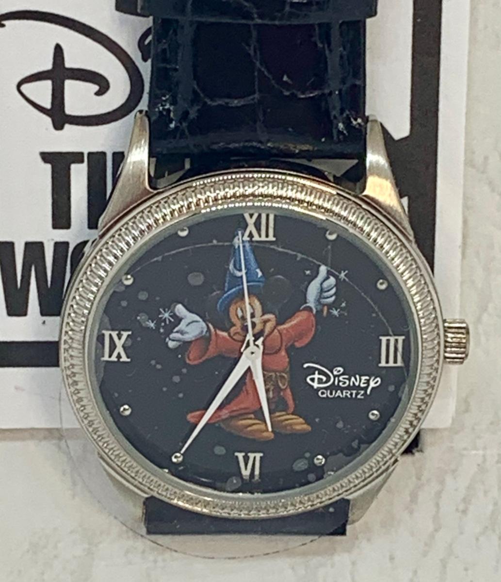 Roman numeral Disney watch featuring "Wizard Mickey" with the original tin box and a genuine leather band. Untested