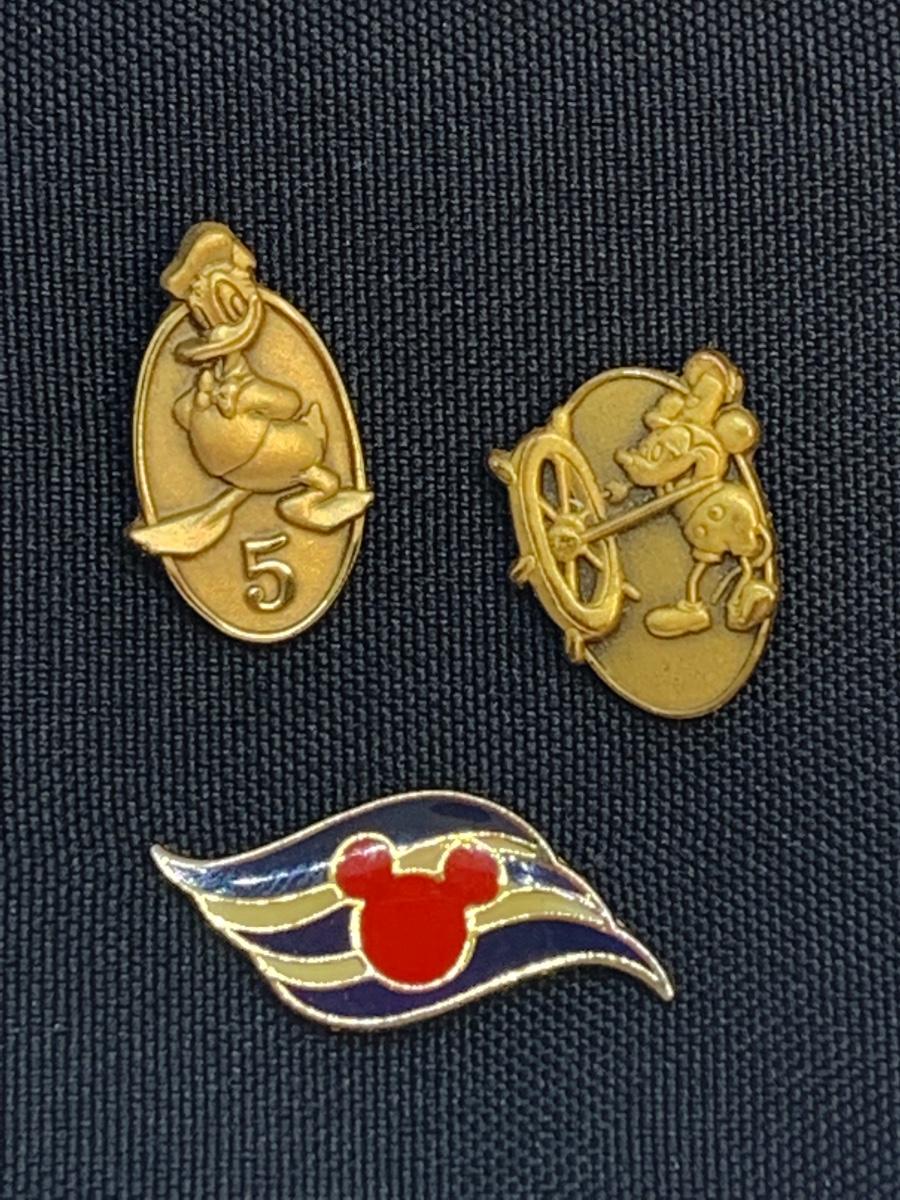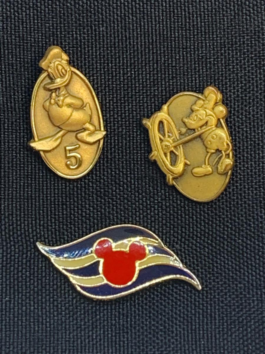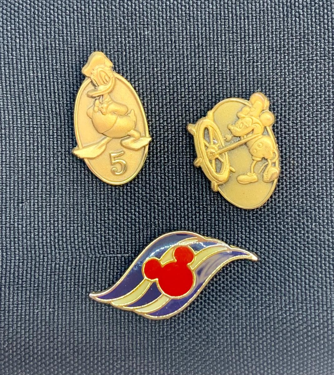 Collection of 3 pins: Donald Duck, Steam Boat Mickey Mouse and Mickey outline design.