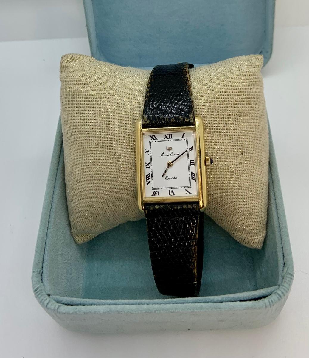 LOT:2: Lucien Piccard 14k gold Watch with Black Leather Band