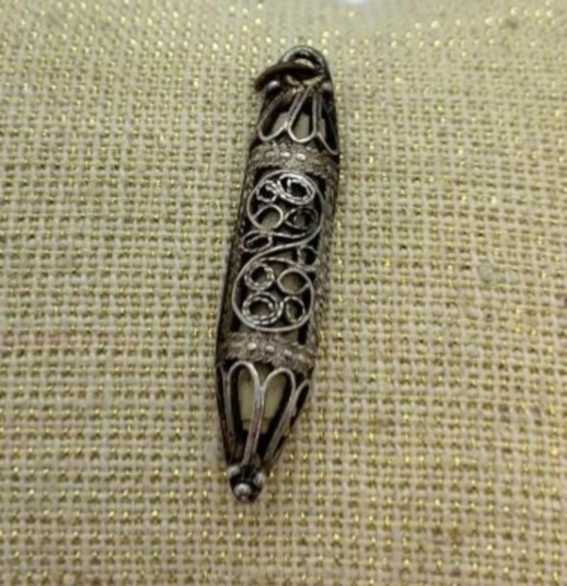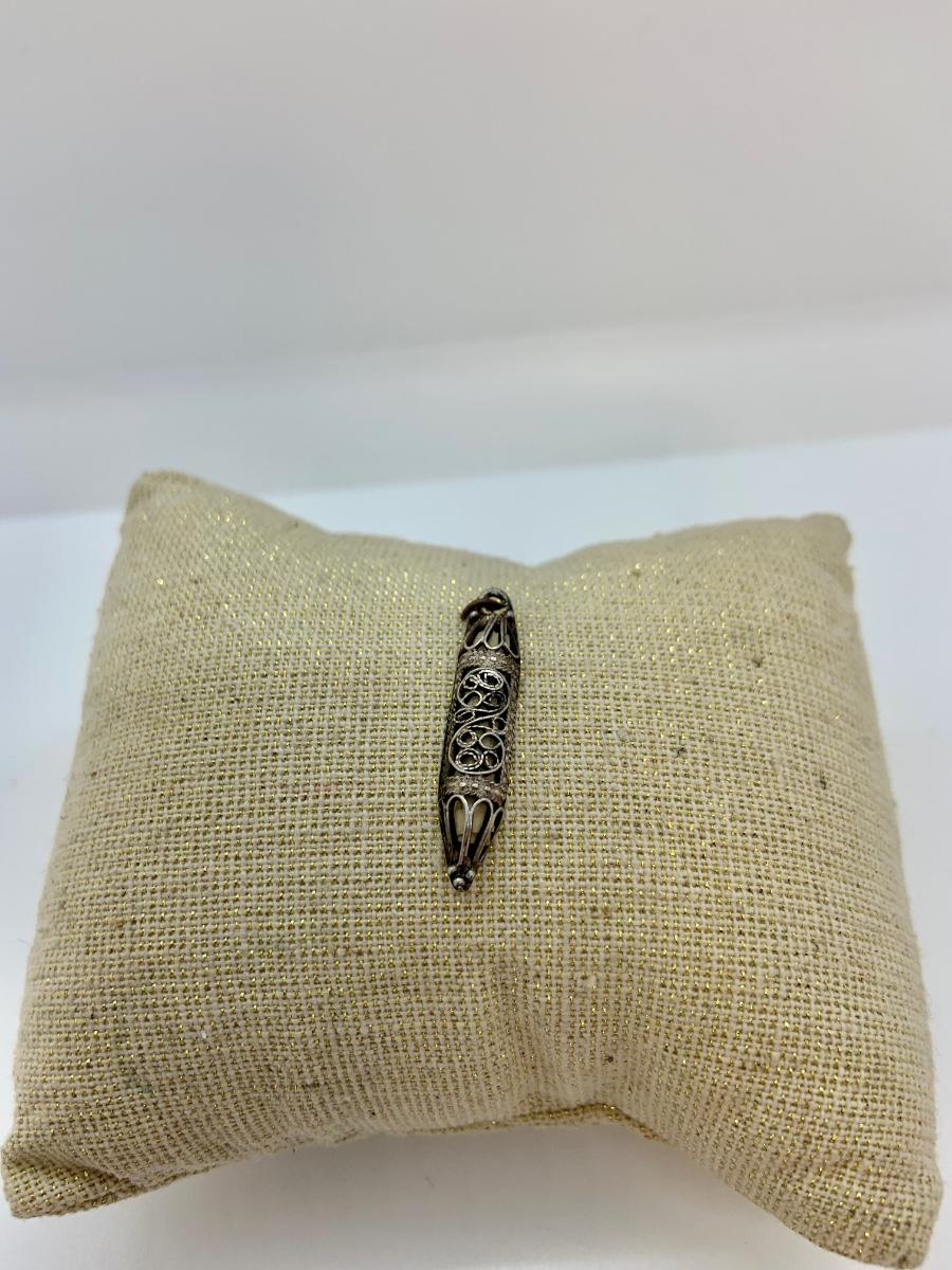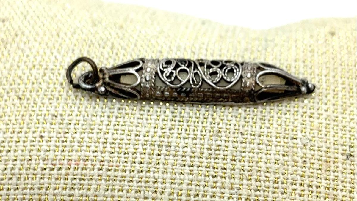 LOT:4: Vintage Sterling Silver Judaica Mezuzah Charm