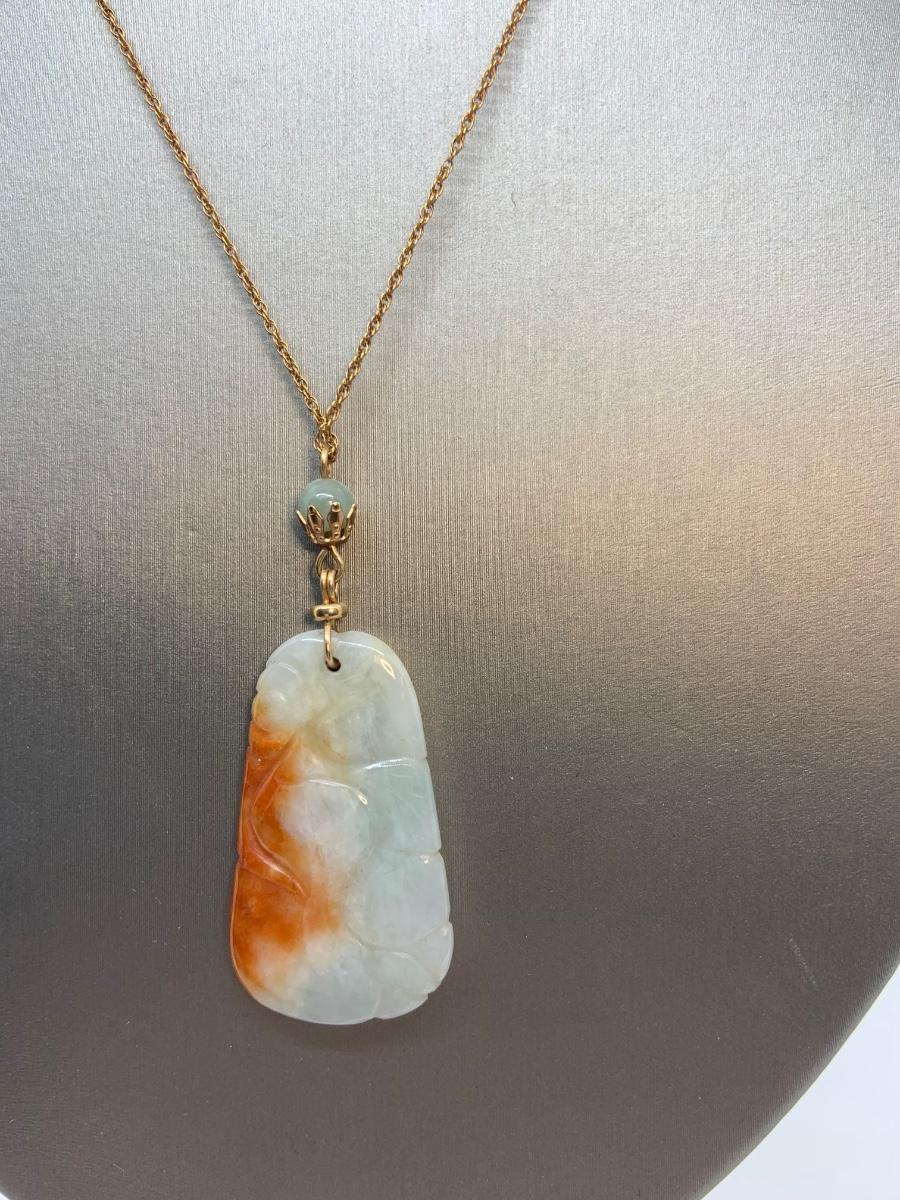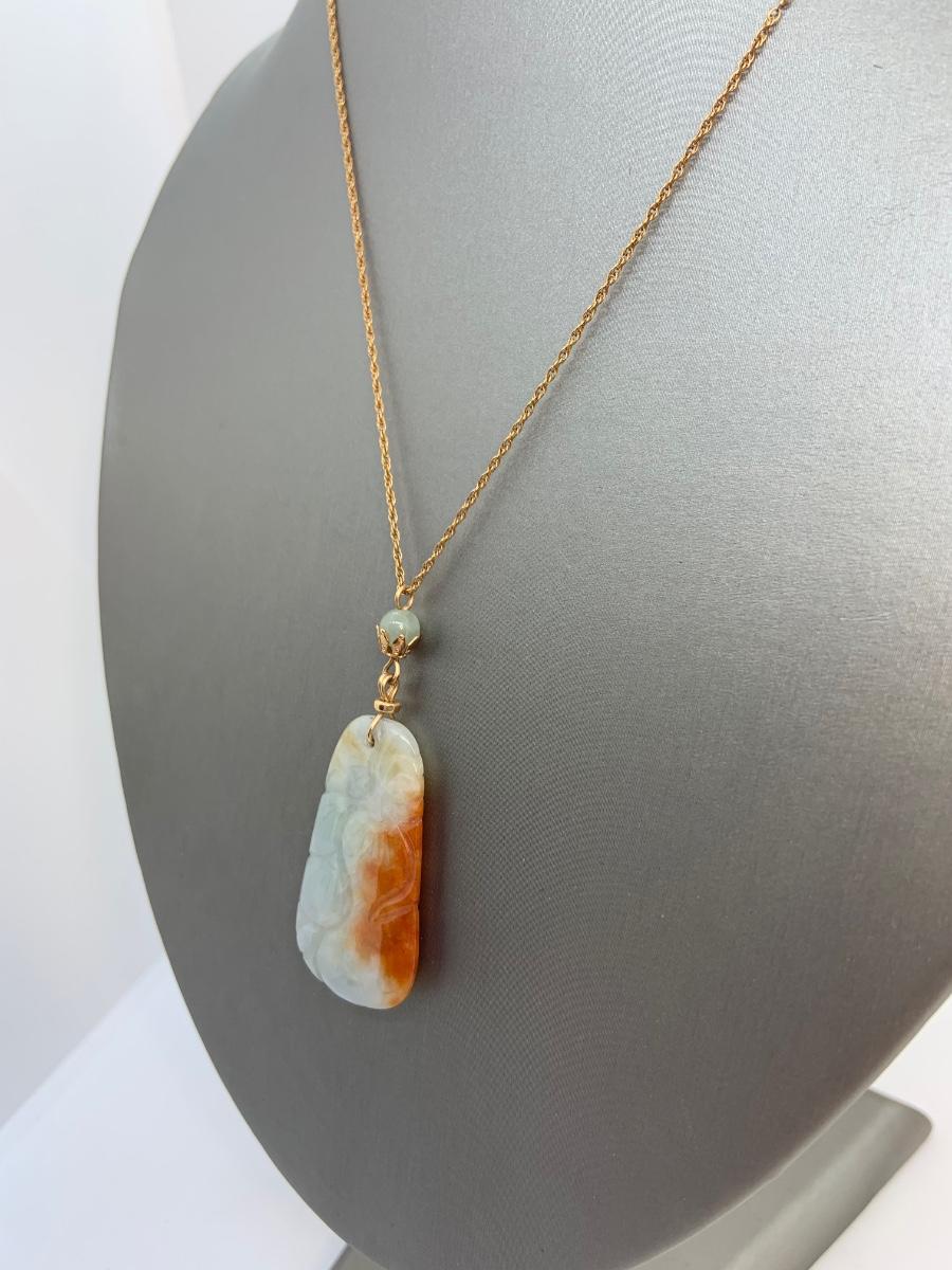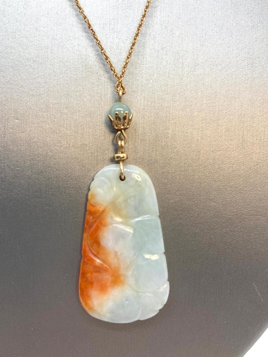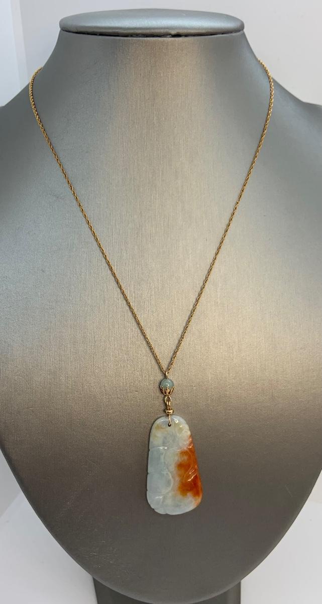 LOT:7: Natural Carved Bi Colored Jade Pendant Necklace