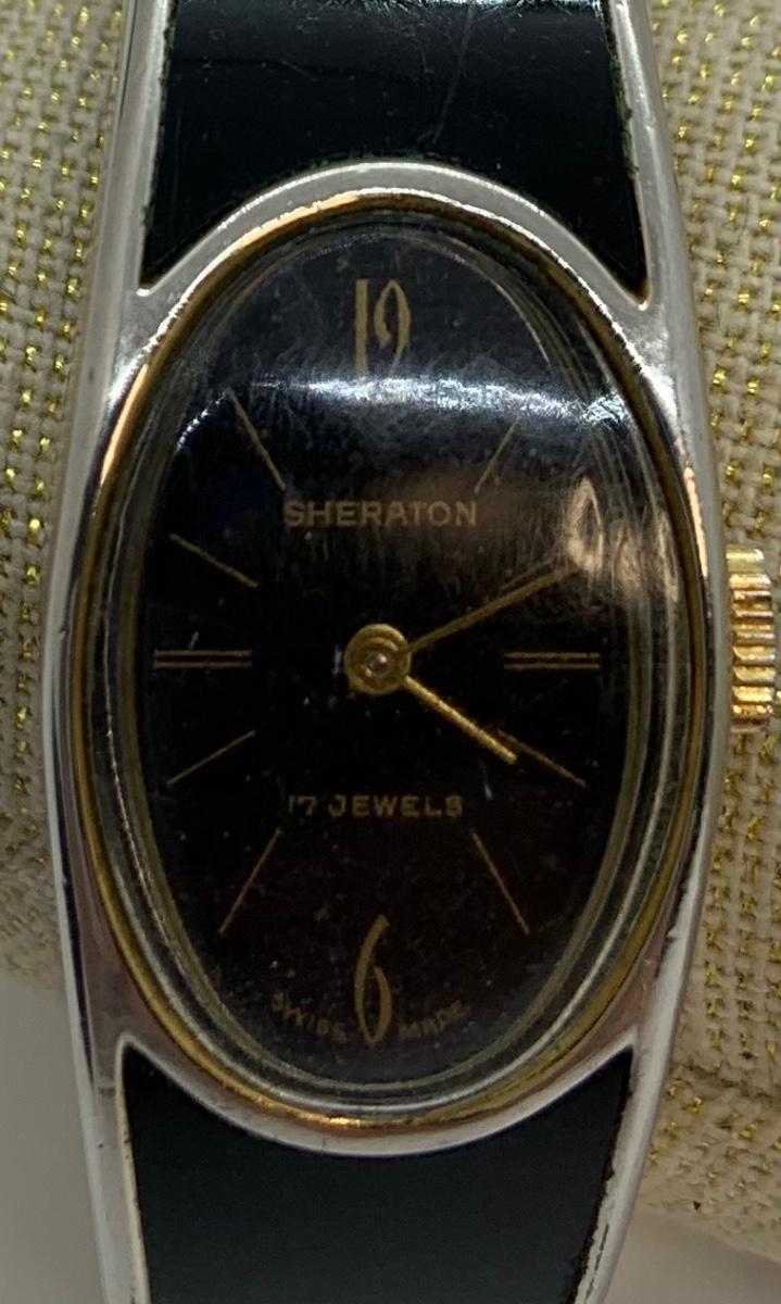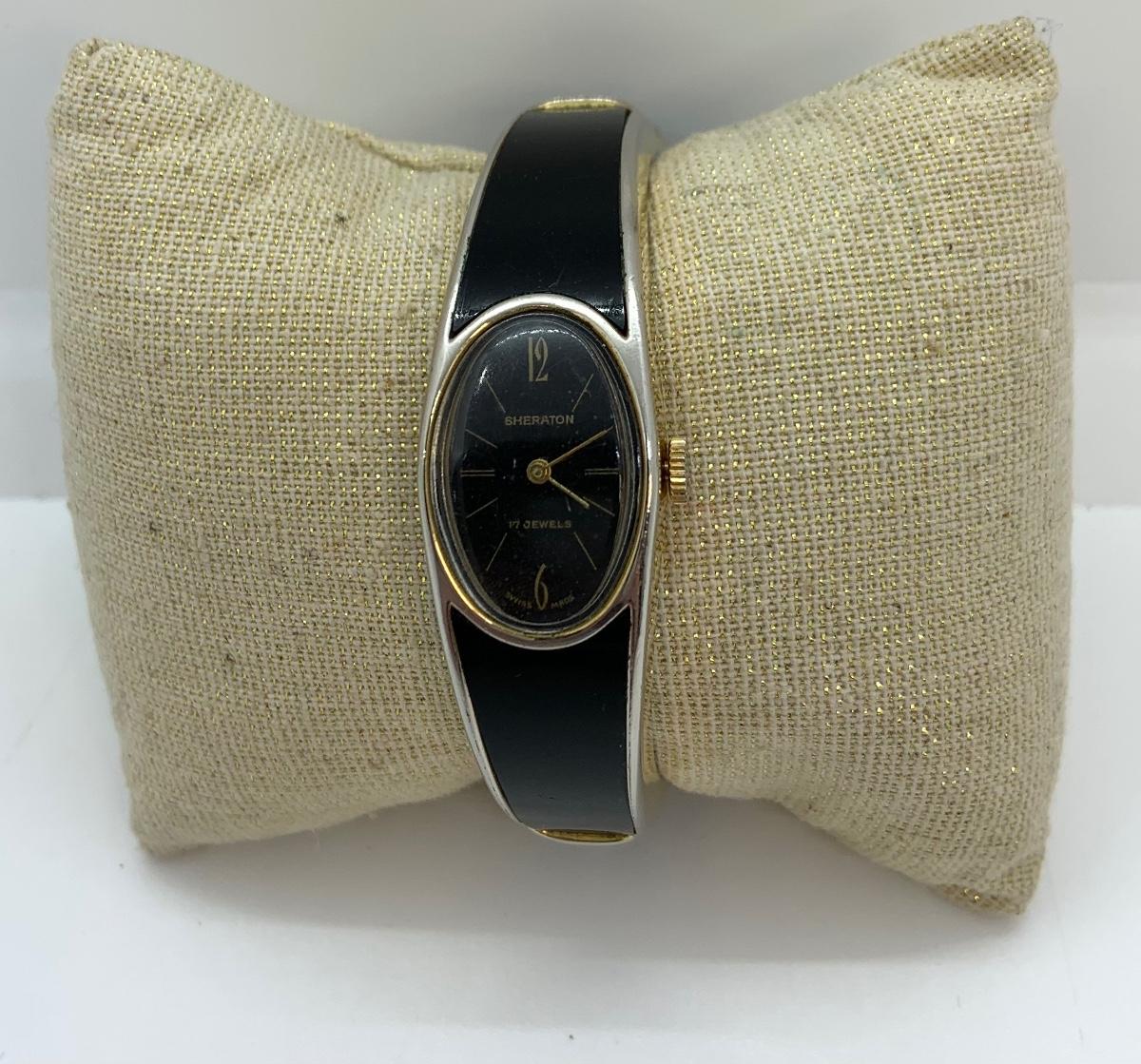 LOT:8: Sheraton 17 jewel Black Oval Face Enamel Watch