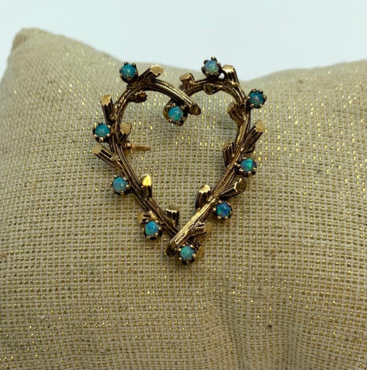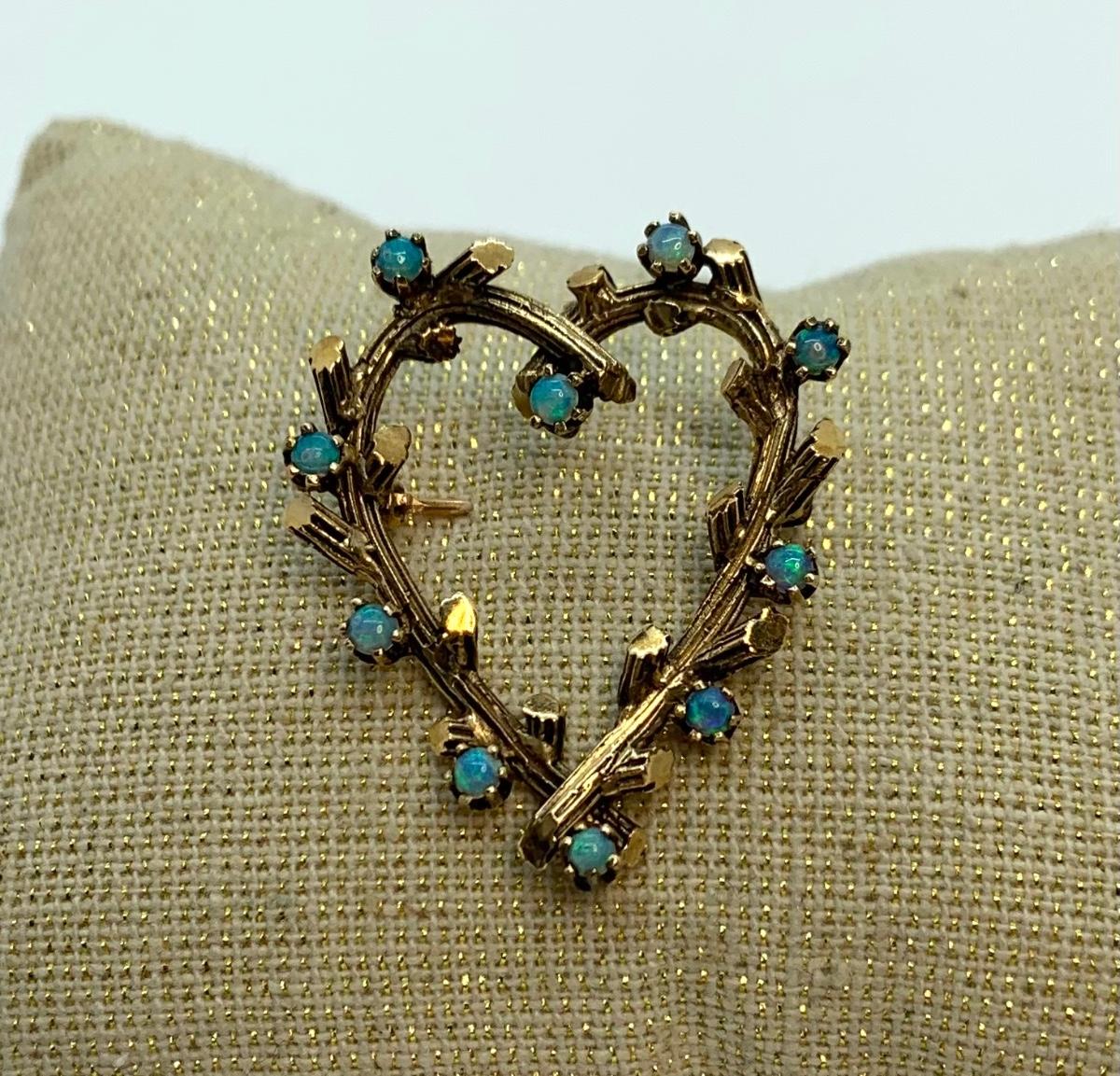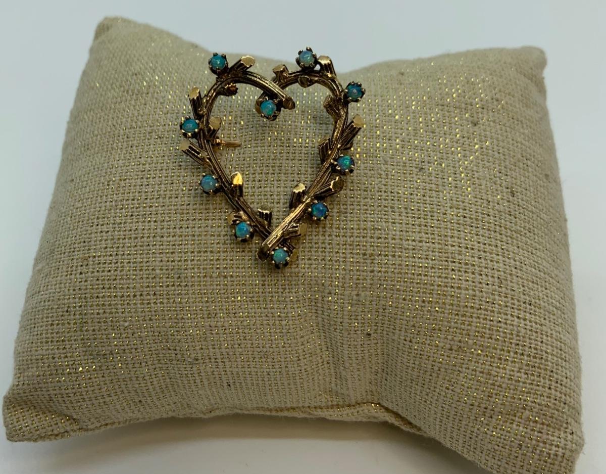 LOT:12: Antique Victorian Heart Shape Brooch/Pendant with turquoise seed beads