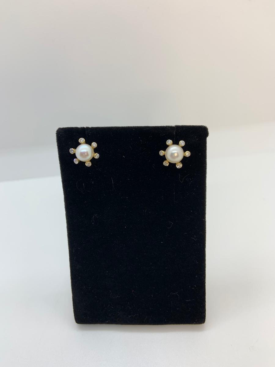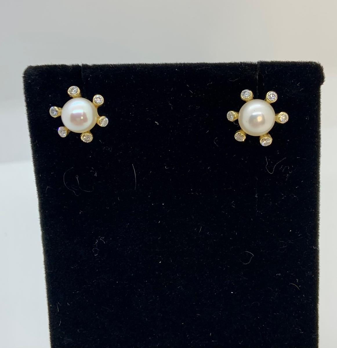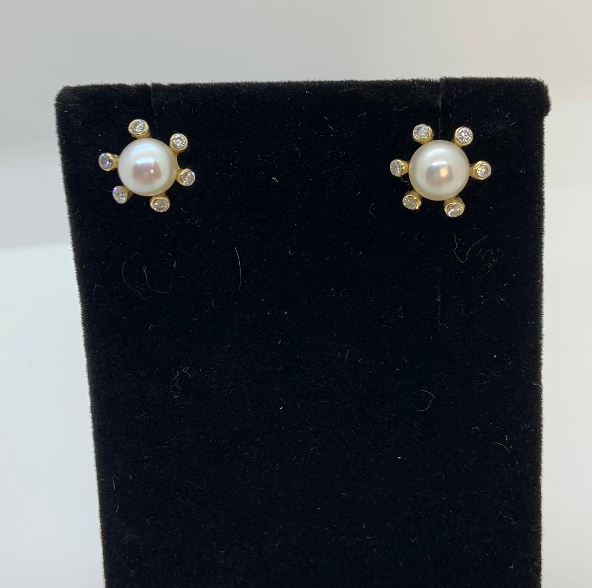 LOT:21: 925 Pearl Stud Earrings surrounded by a halo of simulated diamonds