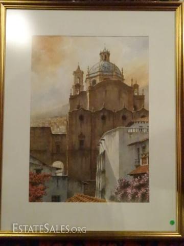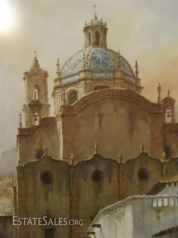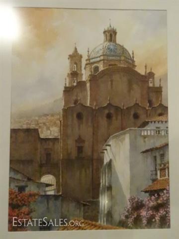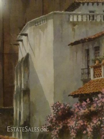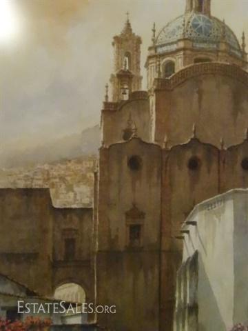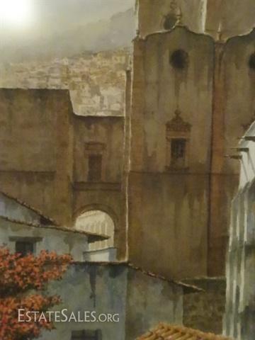 LOT 71A: LARGE WATERCOLOR PAINTING, EUROPEAN CITY SCENE