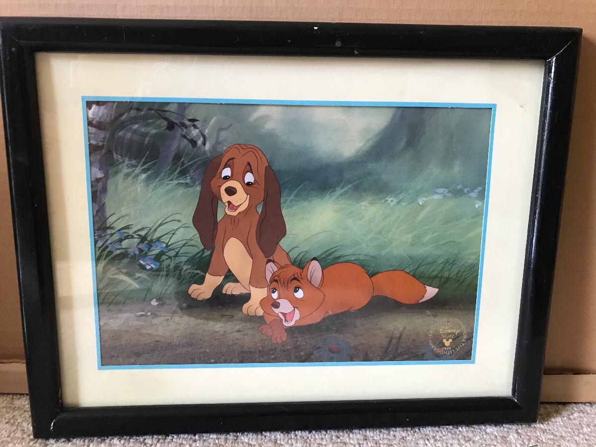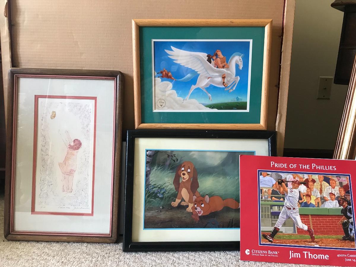 Two Disney prints, Fox and the Hound is 14.5x17.5 framed, a signed and numbered litho, and a Phillies baseball print. Please see all pictures for content of the lot, condition of the lot, and measurements if taken. Pictures are the best representation of the items listed and items are untested unless indicated in description. Thank you for looking and have fun bidding!
