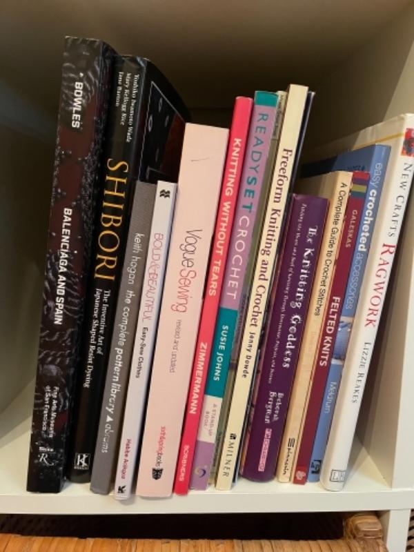 Lot 71BR. Assorted books on fabric art and crafts, knitting, crochet, sewing, felting, dyeing and fashion“”15 books total--$55