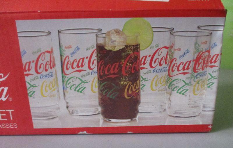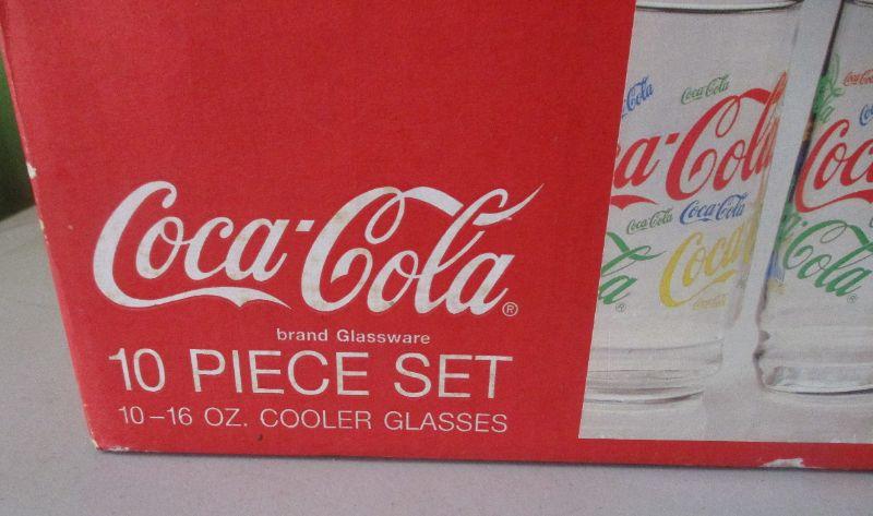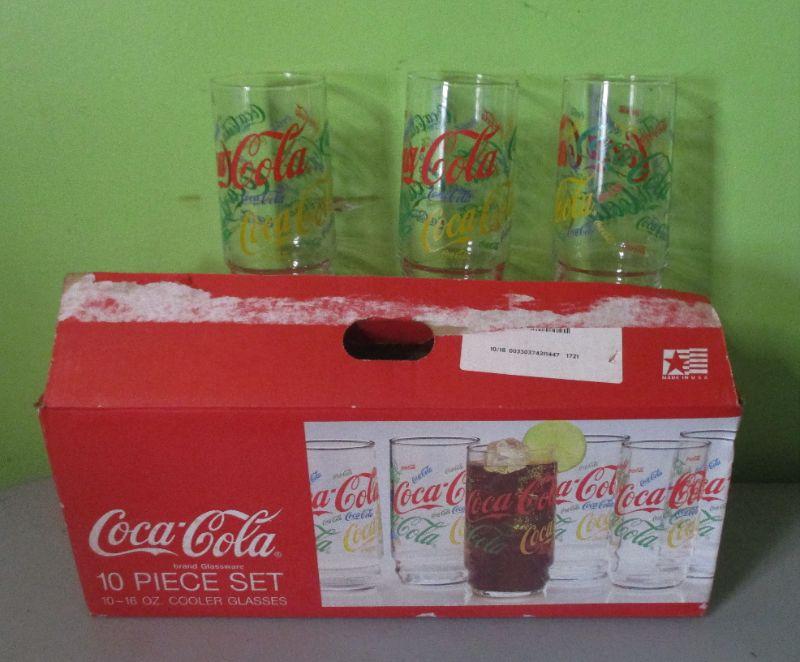 Lot 72 - 10 piece set of Coca-Cola Colorful Collage Glasses GOOGLE ALERT