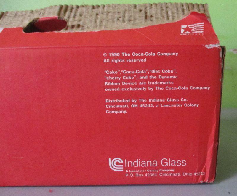 These glasses were never used or taken out of the box. The box shows that they are from the Indiana Glass Company with a copyright of 1990. The glasses are in pristine condition and all 10 are the same pattern.