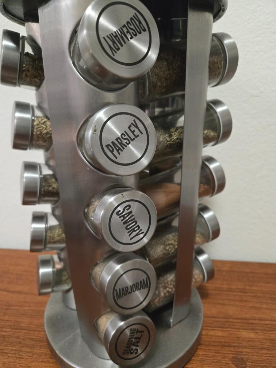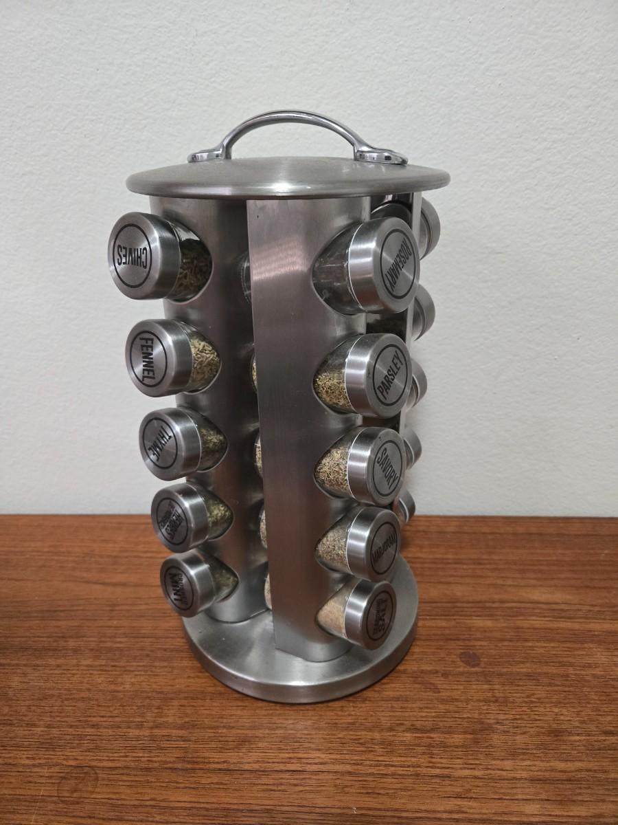 Rotating Spice Rack: Metal & Glass