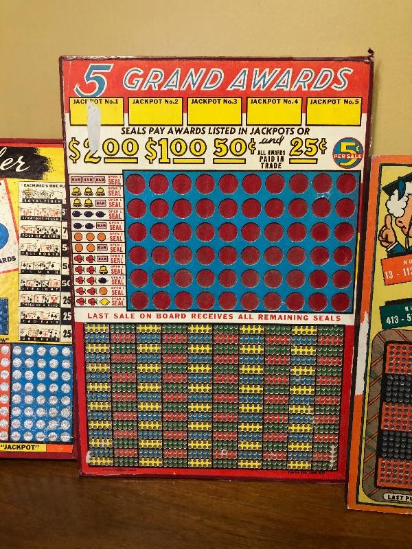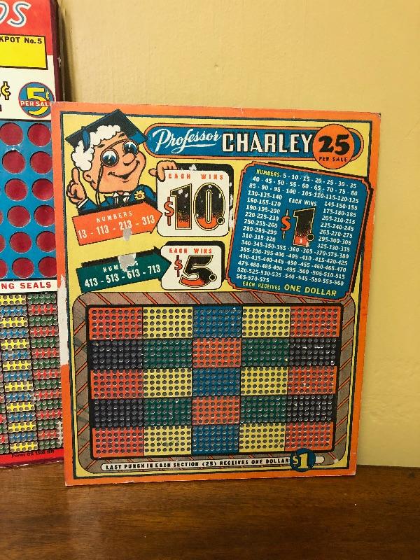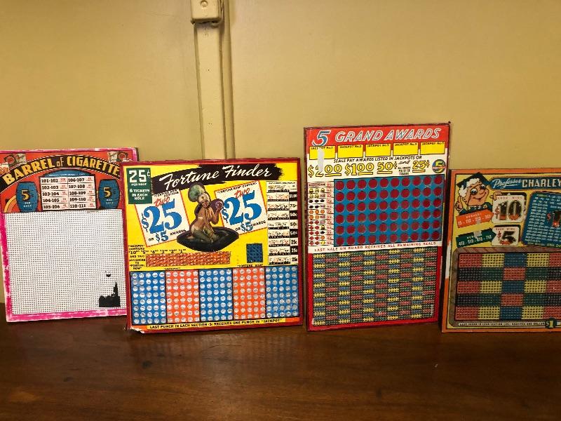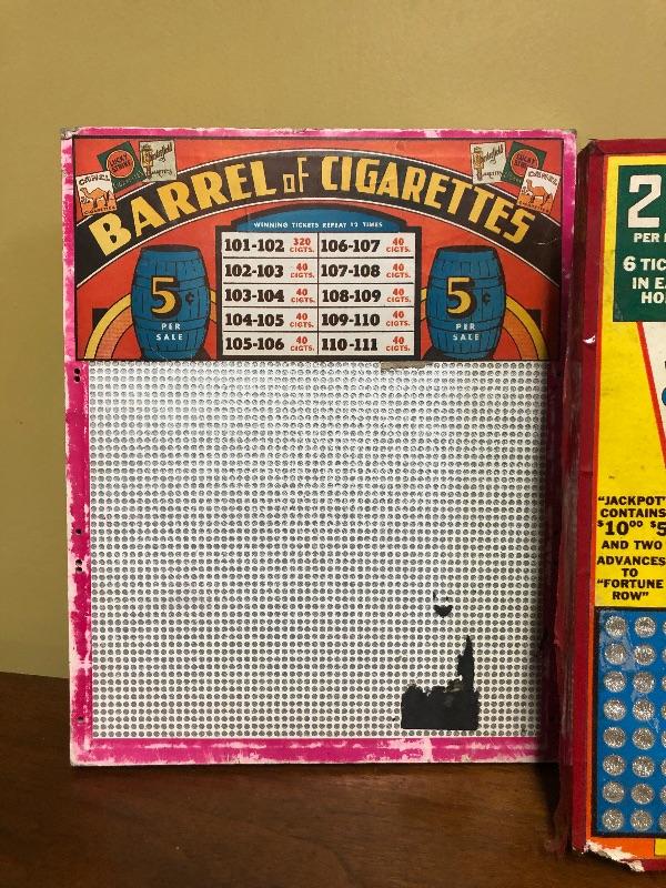 4 Boards: barrel of cigarettes, fortune finders, five grand awards, Professor Charlie.: Vintage used condition
